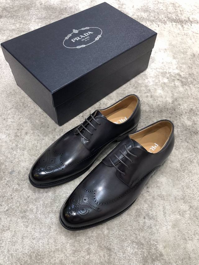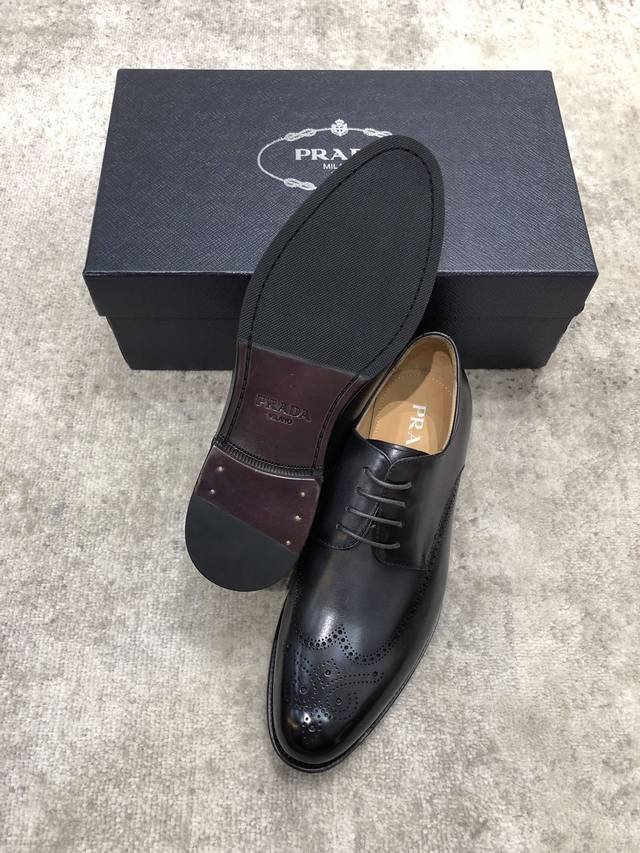 普拉达prada男士精品皮鞋,鞋面进口牛皮 开边珠,水染牛皮内里,真皮大底,标准码39-44 38.45定做不退不换 ,现货
