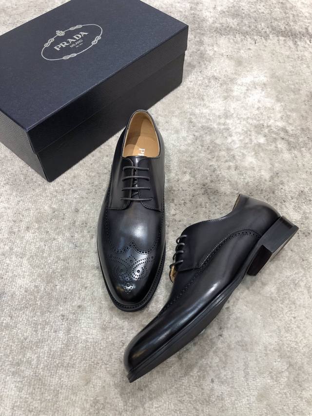 普拉达prada男士精品皮鞋,鞋面进口牛皮 开边珠,水染牛皮内里,真皮大底,标准码39-44 38.45定做不退不换 ,现货 DDD