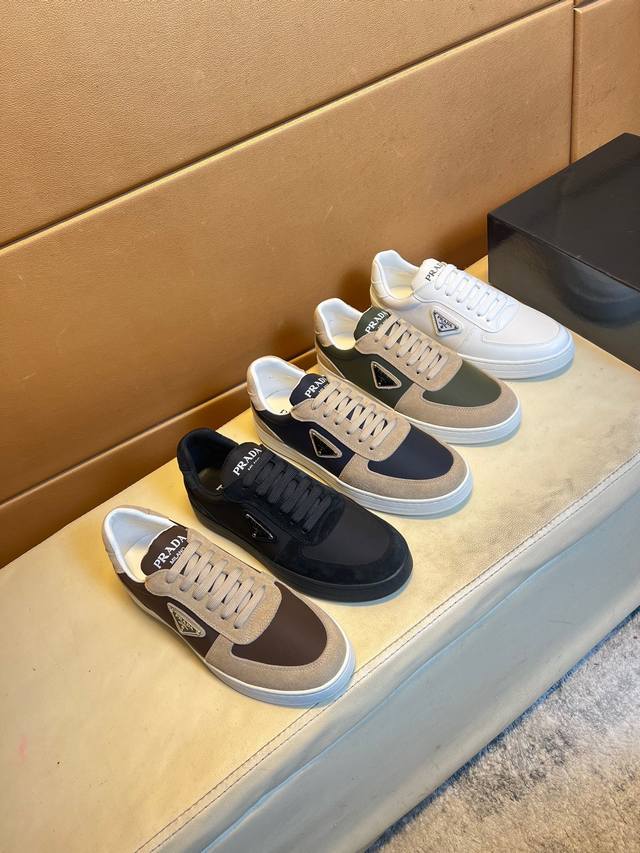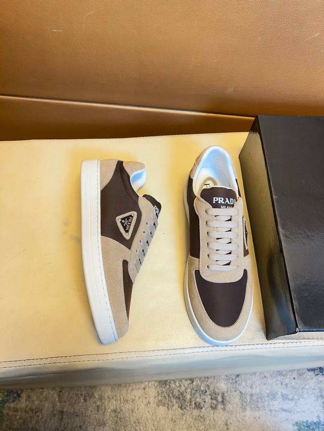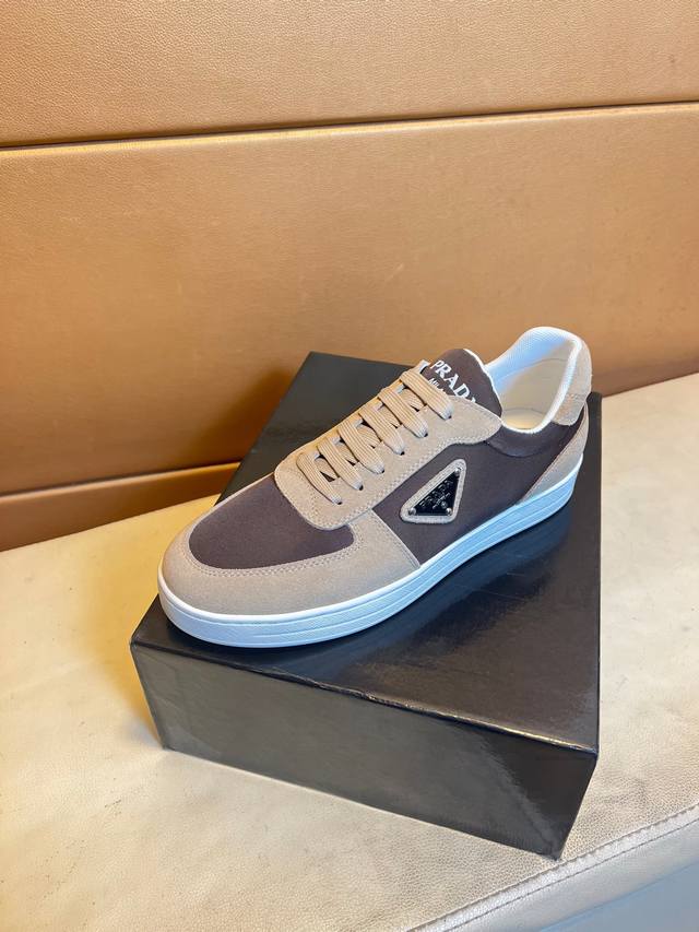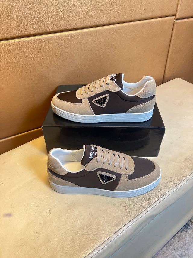 独家首发 原单品质 普拉达~独特现代风运动鞋。休闲乐福原版皮弹力布内里 猪皮垫脚 拒绝脱色磨脚 鞋底:原厂特供原版底,超酷 系带走路都带风风格设计 超舒服耐磨防滑原版底 。就好像实物拍摄实物更赞 适合户外,驾车完美高品质板鞋,男鞋码数:38-44