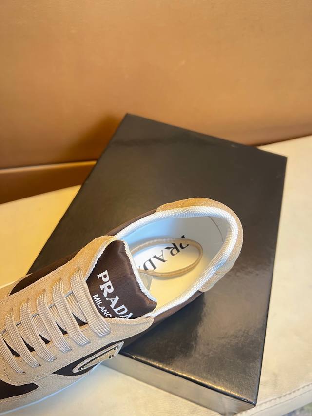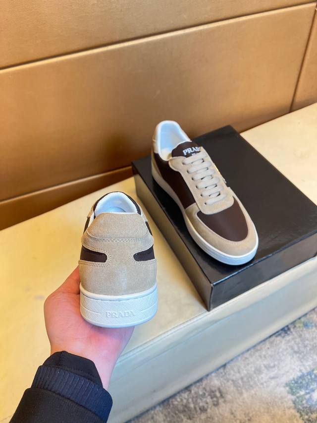 普拉达prada男士经典休闲鞋 大胆试穿去专柜 面料采用进口磨砂牛皮+防水面料羊皮内里...