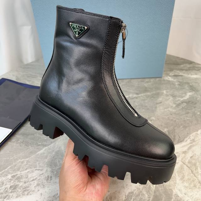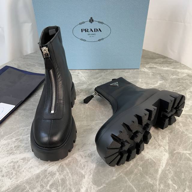 皮面加10 P家最新款 面:高丝光牛反绒、全粒面牛皮 里:进口小牛皮 垫:进口小牛皮 底:原版工艺大底 厚6Cm 标志性三角标,原版包装 Size:35-42 41.42定制