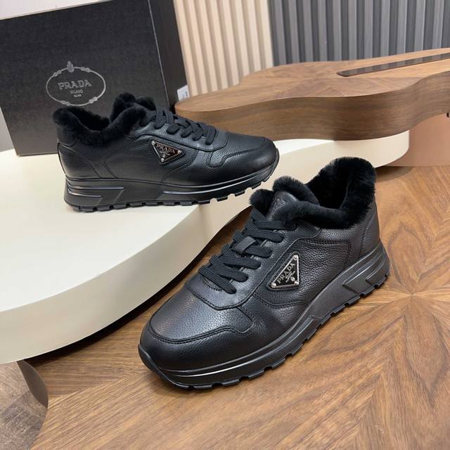 编码:Ys003545 DDD prada 普拉达 prax皮革休闲羊毛鞋出货! DDD 莞产顶级精品!此款运动鞋将风格与舒适融为一体,运动风设计由精致的材料和细节定义。羊毛鞋融入p家典型元素,面料甄选意大利进口超柔软头层牛皮,内里鞋垫皮毛一体真羊毛,鞋帮饰以三角涂珐琅金属徽标,防滑耐磨橡胶鞋底,几何线条花纹+4厘米鞋底,高端品质,自穿送人首选单品。配原盒包装防尘袋! DDD 尺码:39-40-41-42-43-44 皮鞋尺码 38 45 46订 DDD 货号:2Ee443皮面 DDD