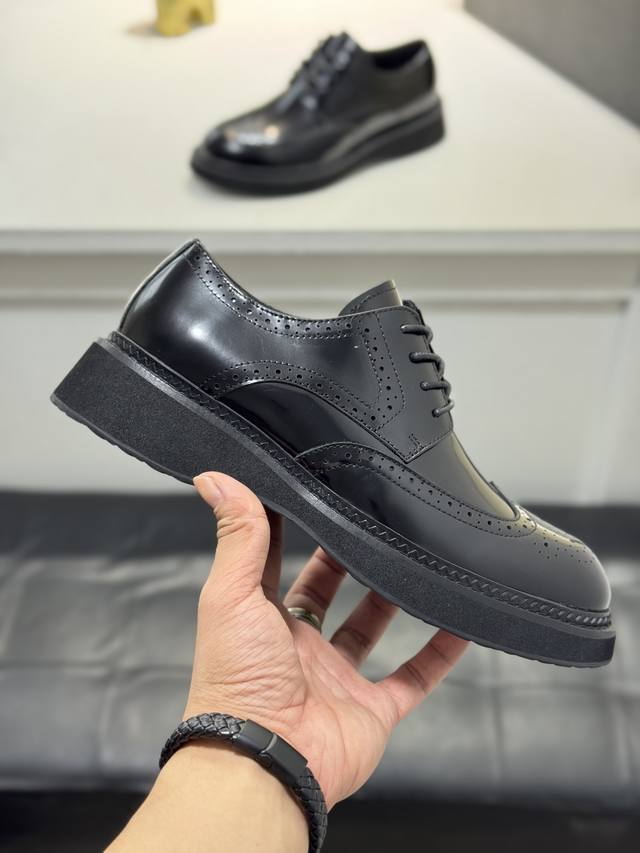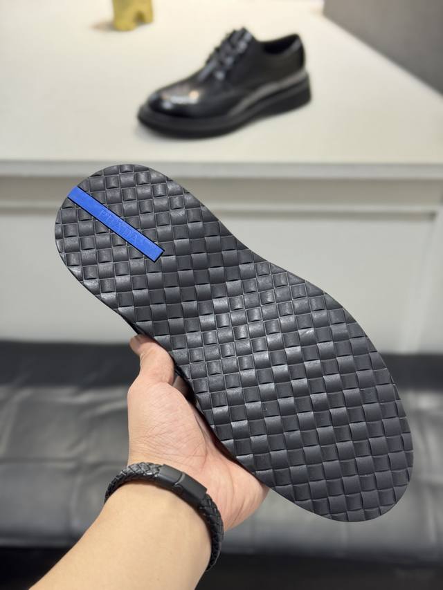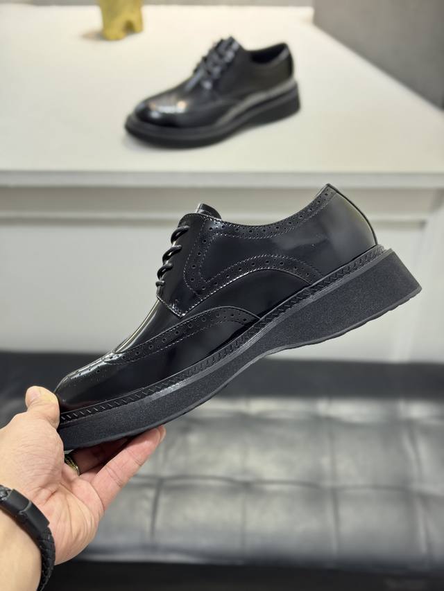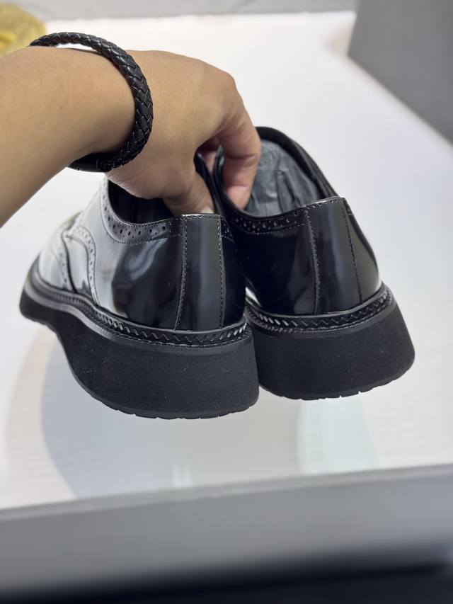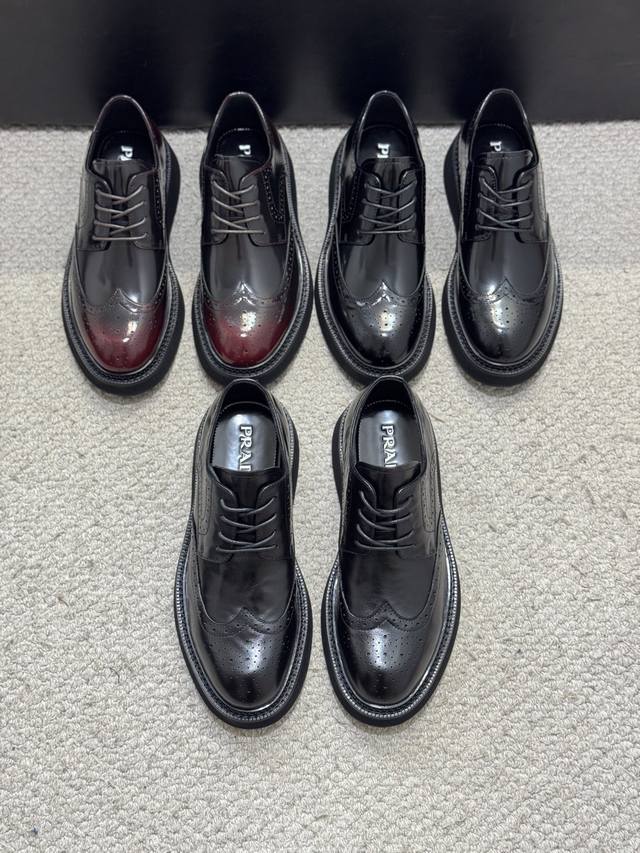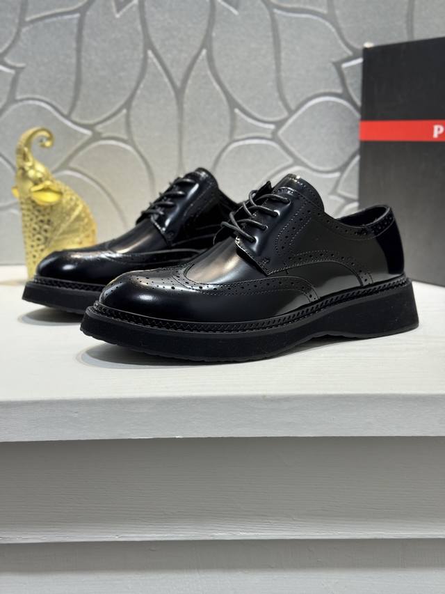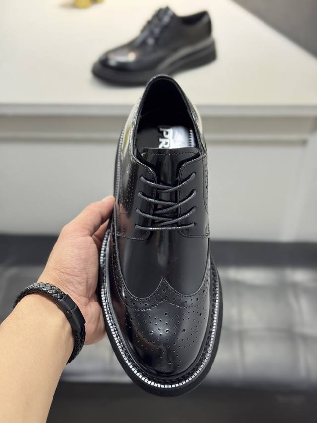 / 调工厂p价 实价 普拉达~松糕厚底男鞋,原单级完美精品,布洛克风格男士正装休闲皮鞋,奢华用料,选用进口牛皮,搭配水染牛皮内里,4.5厘米增高pu发泡轻质大底,完