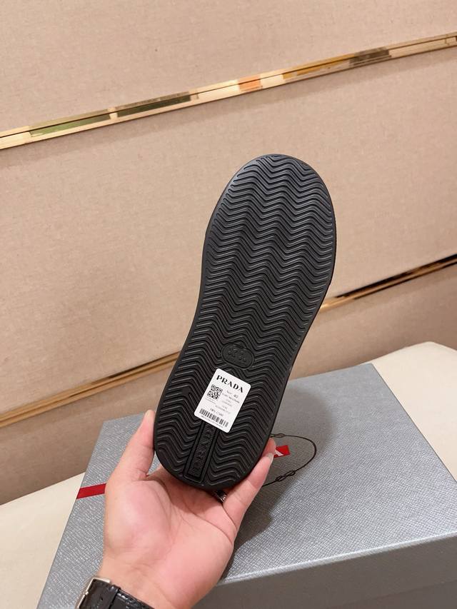 调工厂P价 男装男鞋 运动原单高版本 高品质新款Prada 普拉达 专柜同步上市, 新款男鞋、面料精选头层牛皮工艺制作而成。内里:全牛皮内里。高端气垫开模防滑橡