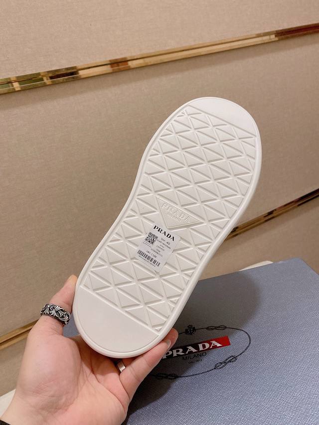 / 调工厂P价 男装男鞋 运动原单高版本 高品质新款Prada 普拉达 专柜同步上市, 新款男鞋、面料精选高科技滴胶工艺制作而成。内里:全牛皮内里。高端气垫开模防滑