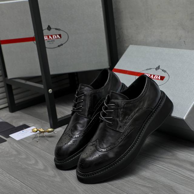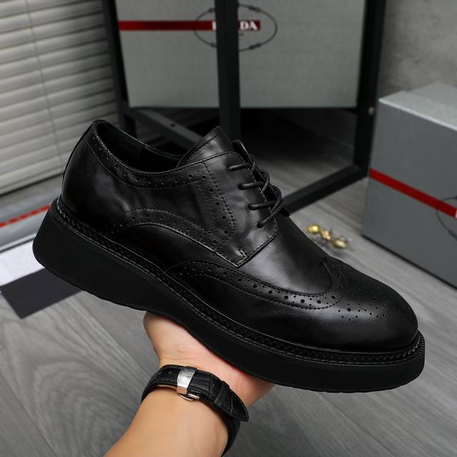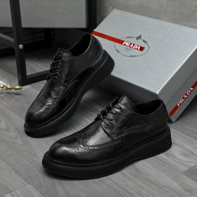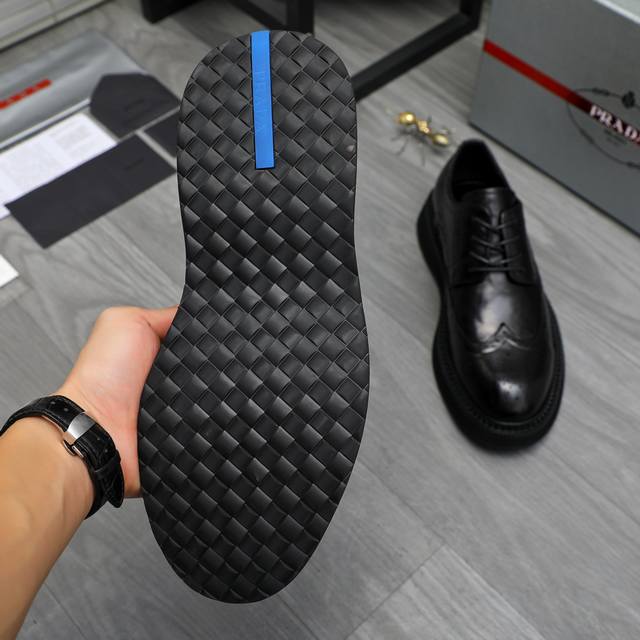 / 调工厂p价 男装男鞋 运动原单 商品商标:prada 普拉达 商务正装皮鞋 正码码数: 38-44 商品材料:精选 优质牛皮冲孔鞋面 牛皮内里 原版橡胶防滑大底