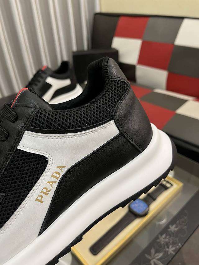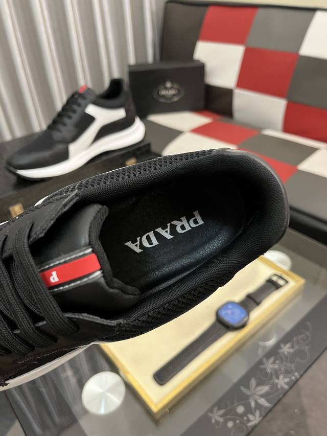 顶级版本Prada 普拉达 经典款纯黑拼接运动鞋...