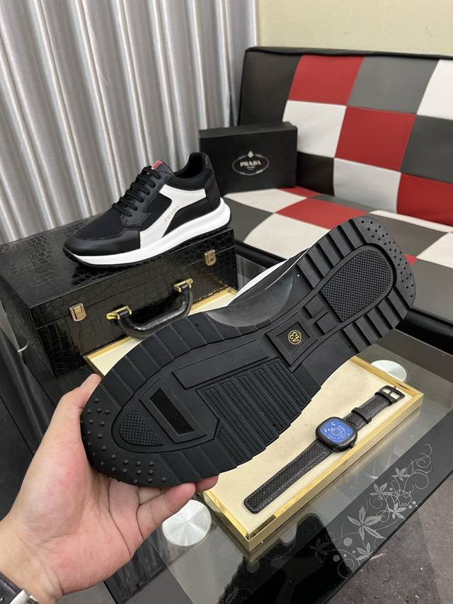 Prada普拉达 男鞋专柜爆款,官网同步,1高品质出货 原版磨砂牛皮+牛皮内里,11复刻 ,原厂原版底,38-45 45定做不退换