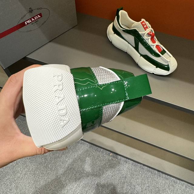 工厂P价 普拉达Prada男士经典跑步鞋 大胆试穿去专柜 面料采用进口磨砂牛皮面料羊皮内里 透气网状轻面料...