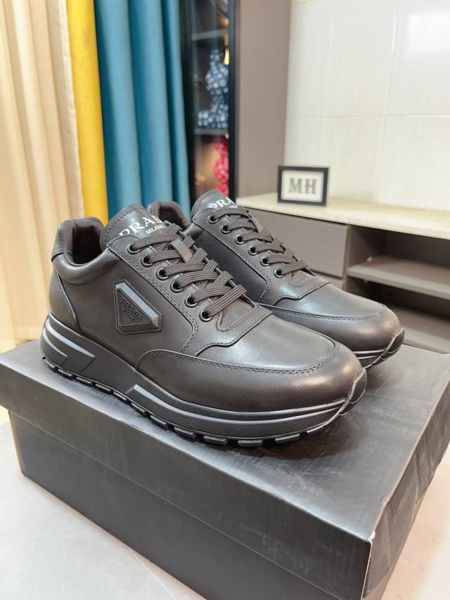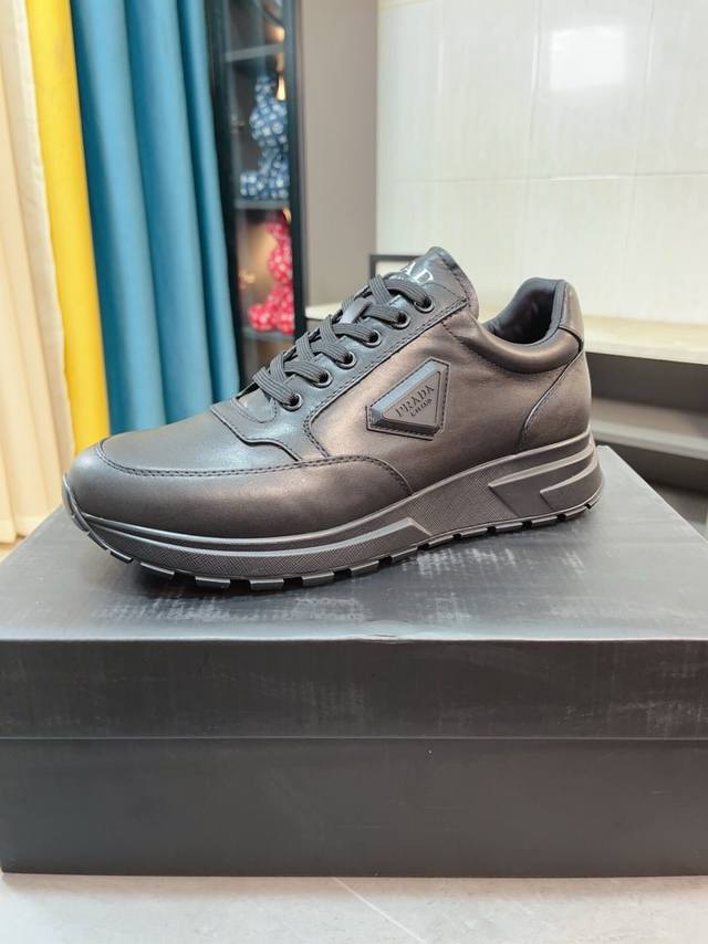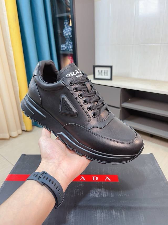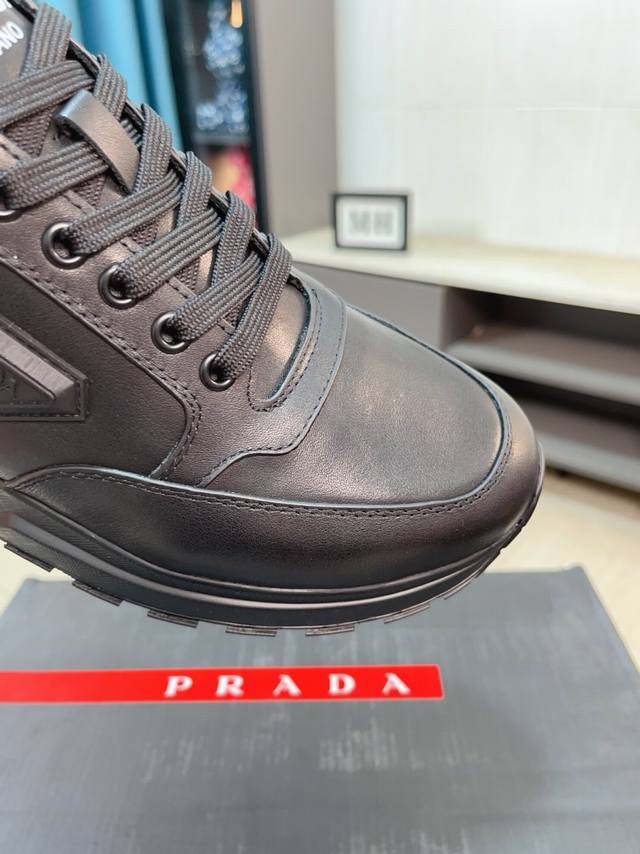 prad*普拉达 专柜爆款男鞋 官网1:1制作 进口牛皮面料拼接 牛皮内里 原厂特供原版底 38-45 45订做不退换