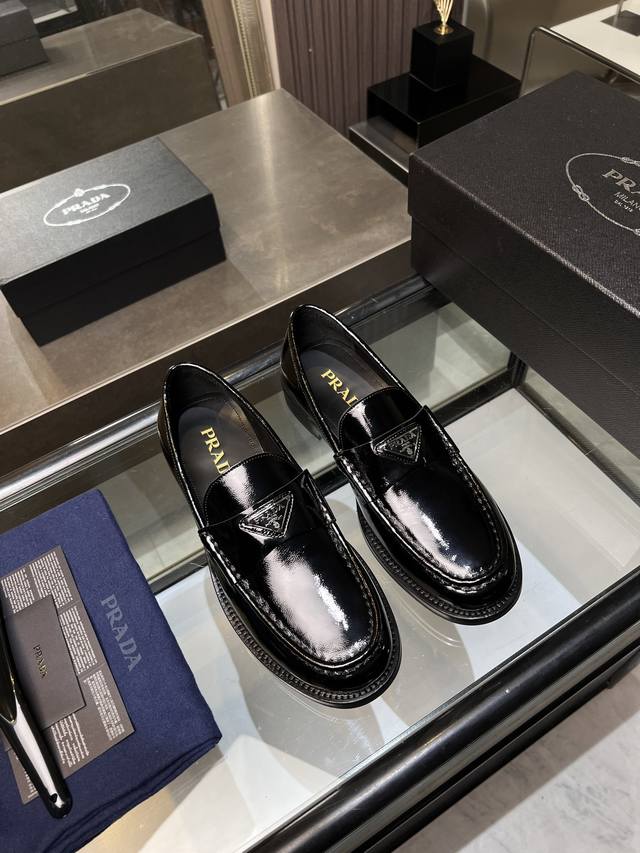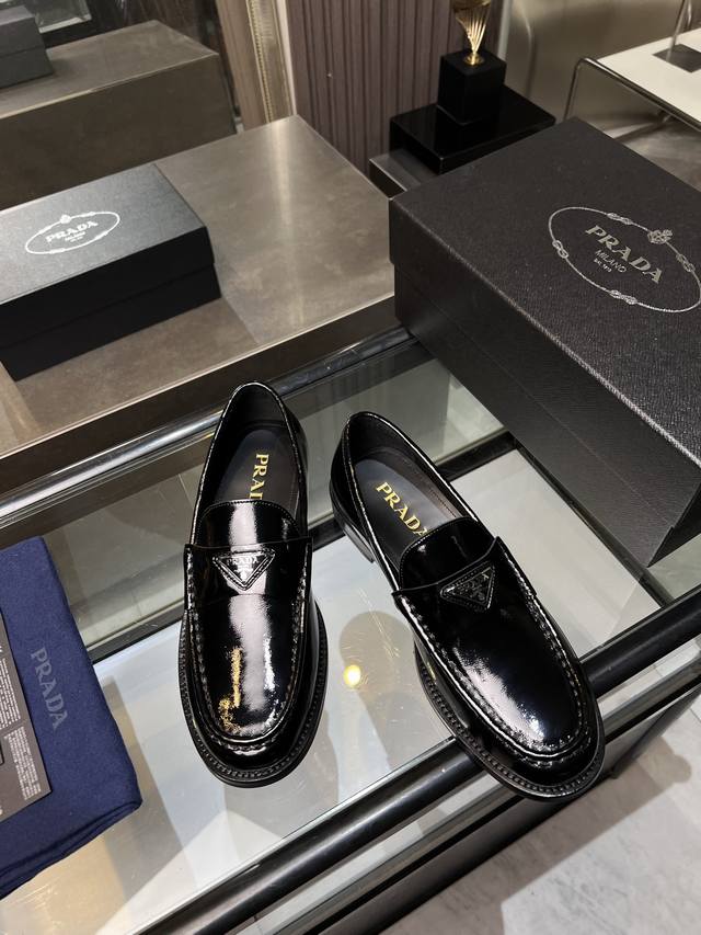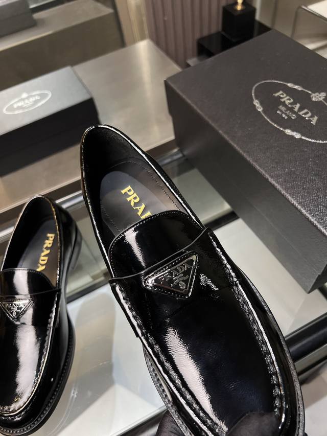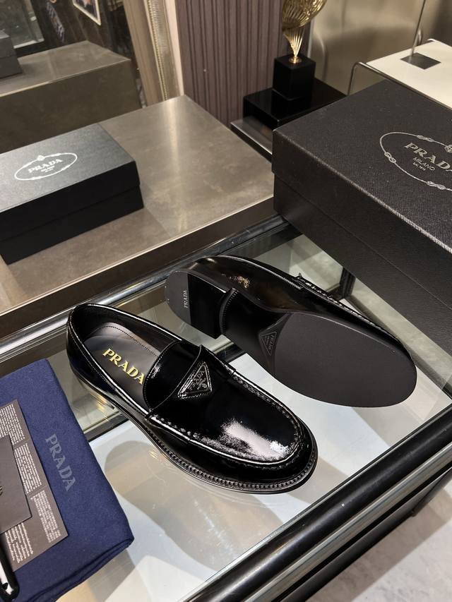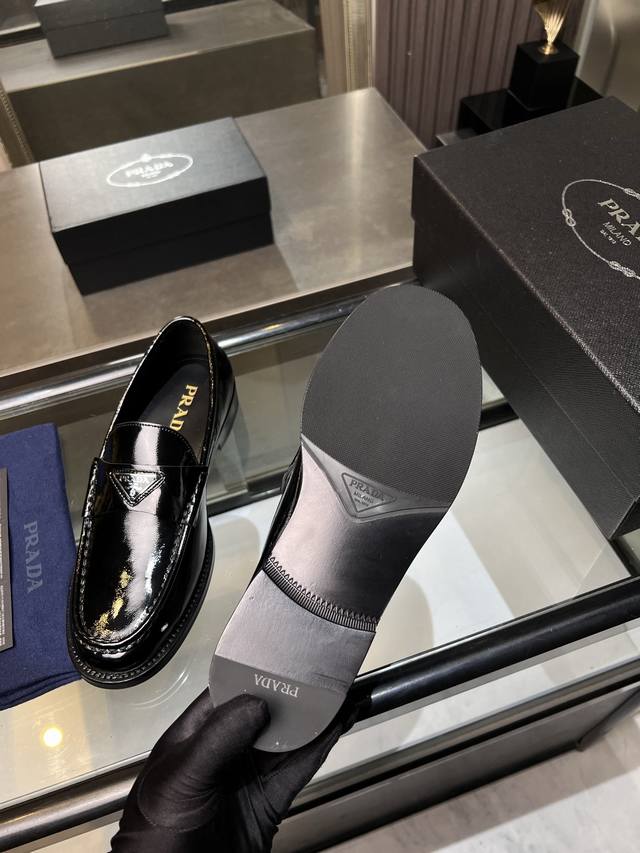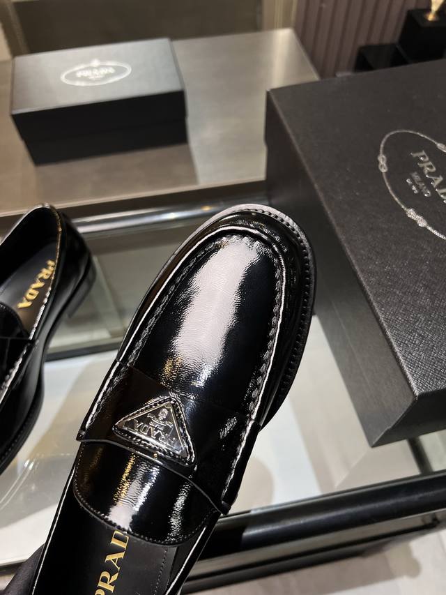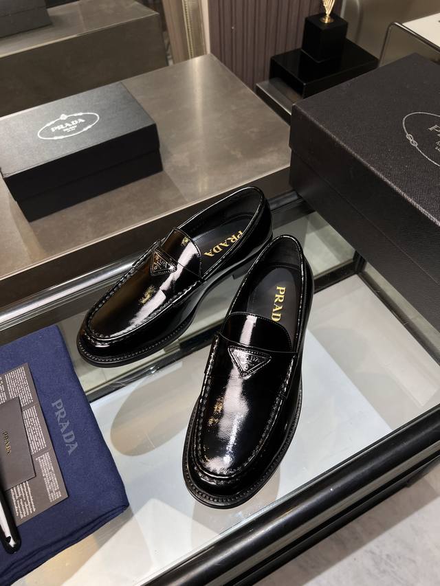 / 调工厂P价 男装男鞋 运动原单 Prada普拉达高端男士热卖精品休闲皮鞋,进口牛皮革乐福鞋将工致元素与摩登魅力融合,韧性强耐折不易变形,经久耐穿!进口水染牛皮内