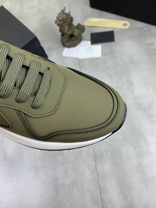 调工厂P价 男装男鞋 运动原单 Prada普拉达 透气舒适男鞋官网经典最新款上市了1:1复制,香港同步,走秀同台;全部采用小牛皮配透气网布面料进口柔软舒适猪皮内