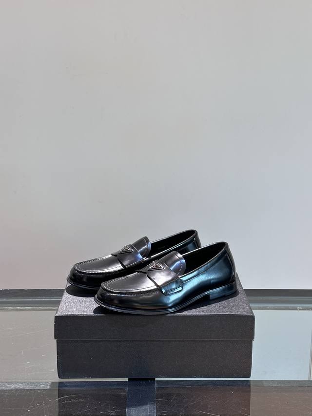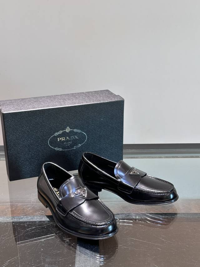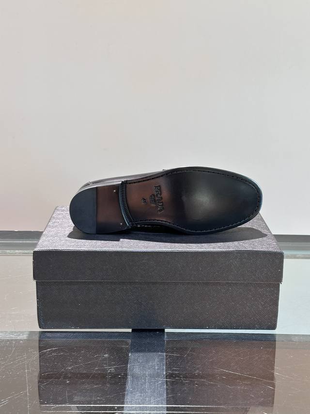/ 调工厂P价 男装男鞋 运动原单 Prada 普拉达经典真皮大底正装休闲皮鞋,鞋面采用进口牛皮打造,皮质纹理细腻,色泽光亮饱满,精致缝线细节,品质尊贵,款式典雅。