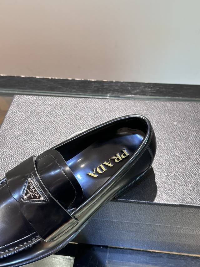 调工厂P价 男装男鞋 运动原单 Prada 普拉达经典真皮大底正装休闲皮鞋,鞋面采用进口牛皮打造,皮质纹理细腻,色泽光亮饱满,精致缝线细节,品质尊贵,款式典雅。