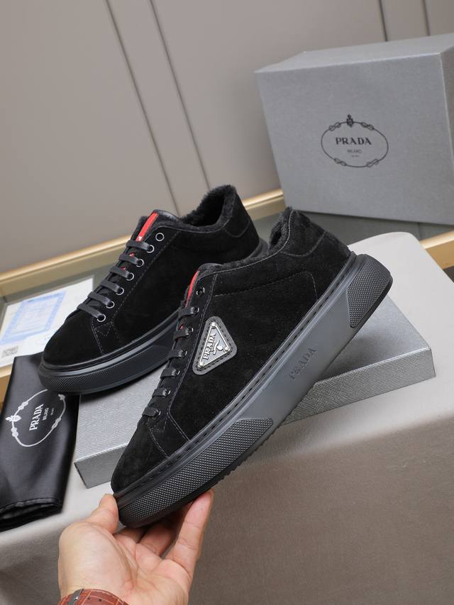 / 调工厂p价p调工厂p价 调工厂p价pRada 普拉达 男士新款休闲鞋,这款鞋面采用进口小牛皮+绒里!外侧饰以调工厂p价p家经典金属三角珐琅徽标,大底采用防滑运动