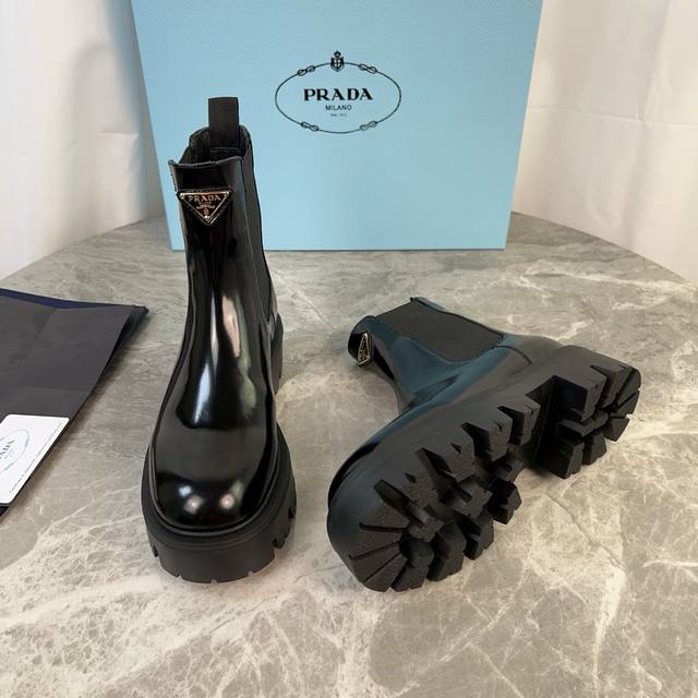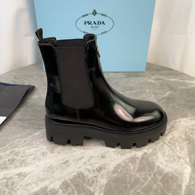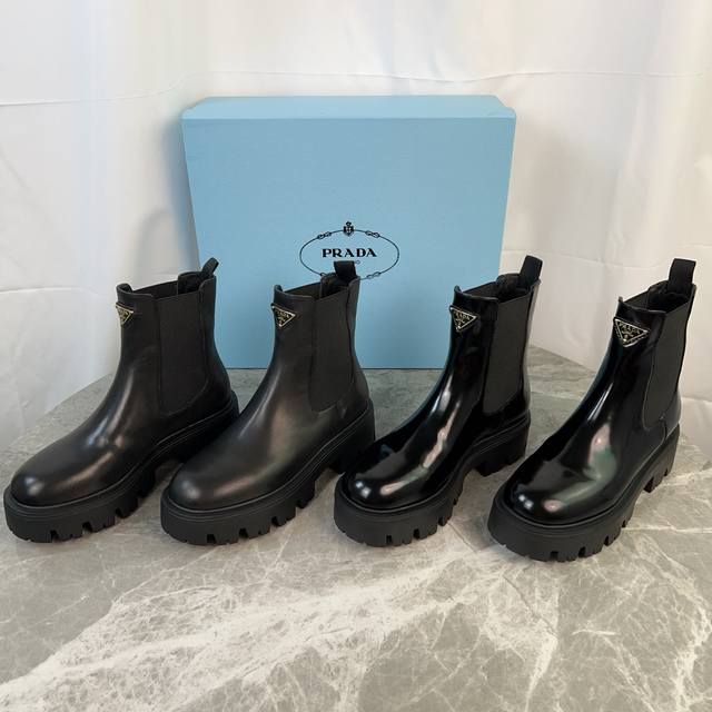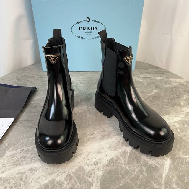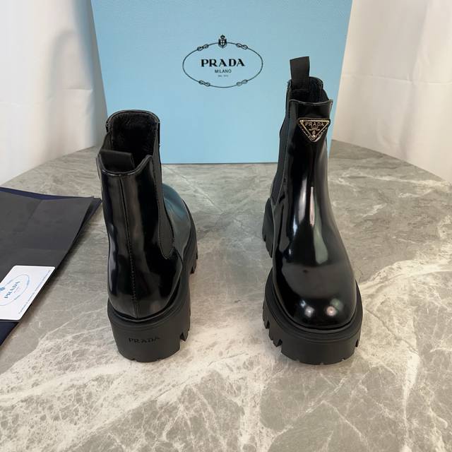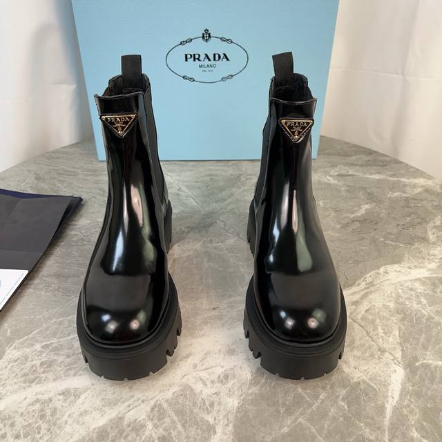 P家最新款 面:进口开边珠、小牛皮 里:进口混种羊皮 垫:混种羊皮 底:原版工艺大底 厚6Cm 标志性三角标,原版包装 Size:35-41 40.41定制