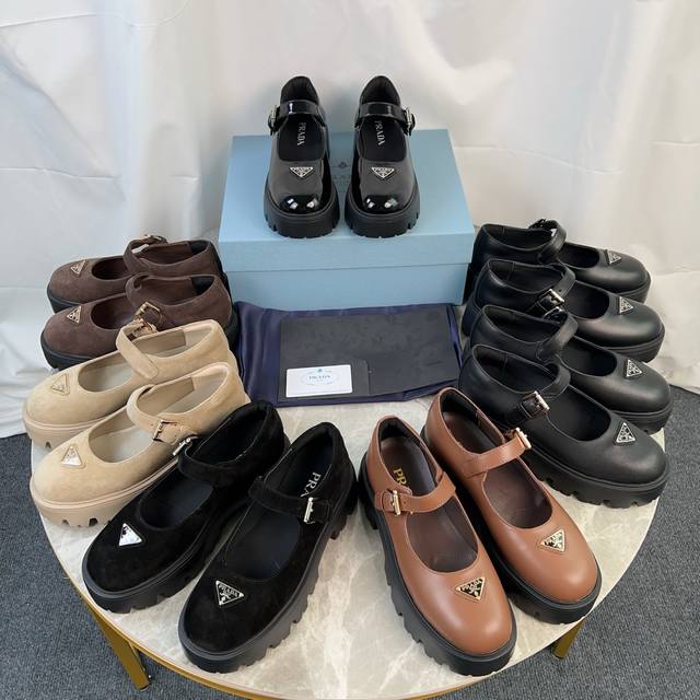 P家最新款 面:进口开边珠、牛皮、牛反绒 里:超软牛皮里 垫:牛皮 底:原版发泡底 标志性三角标,原版包装 Size:35-41 40.41定制