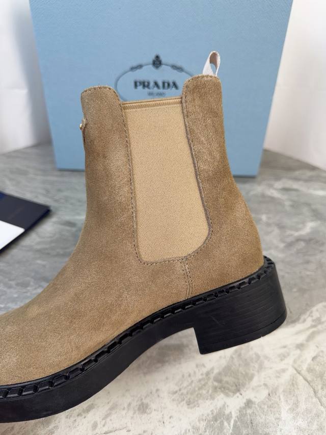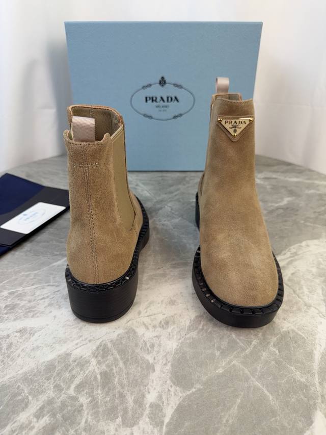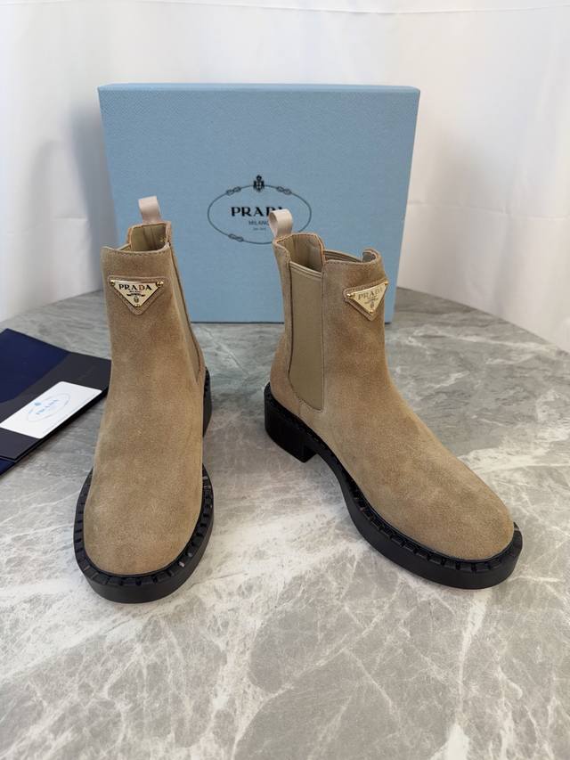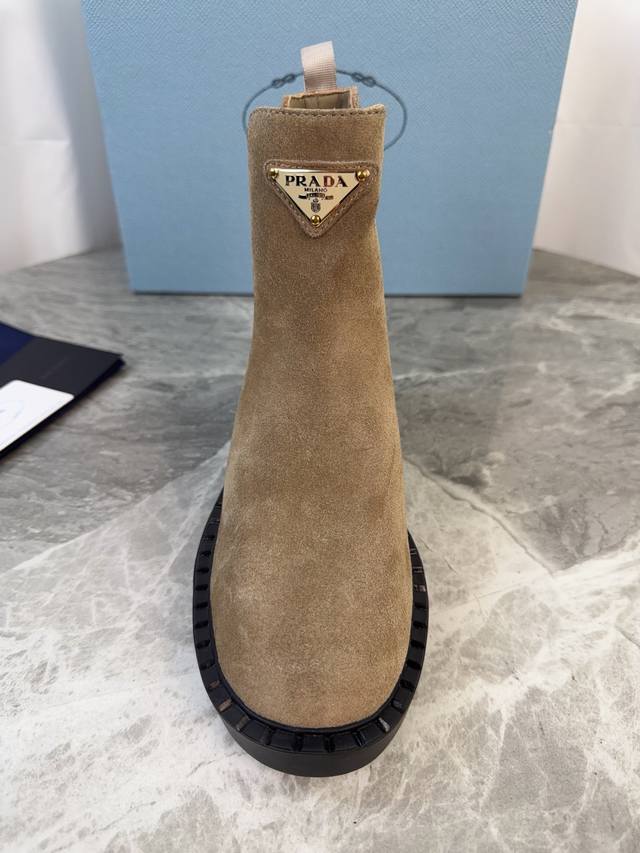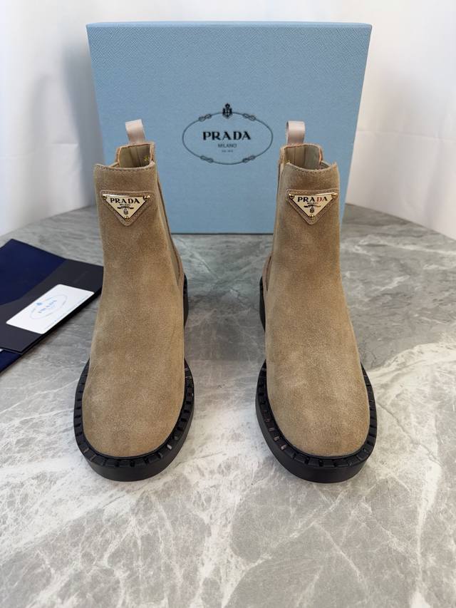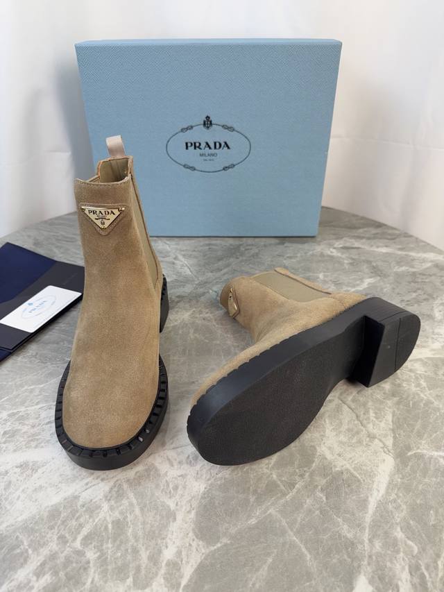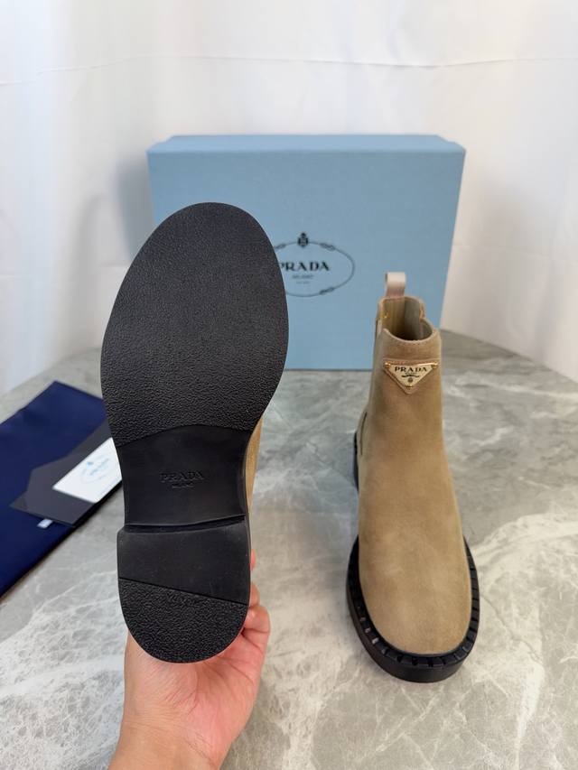 P家最新款 面:进口牛皮、高丝光牛反绒 里:混种羊皮里 垫:羊皮 底:原版工艺橡胶底 标志性三角标,原版包装 Size :35-41