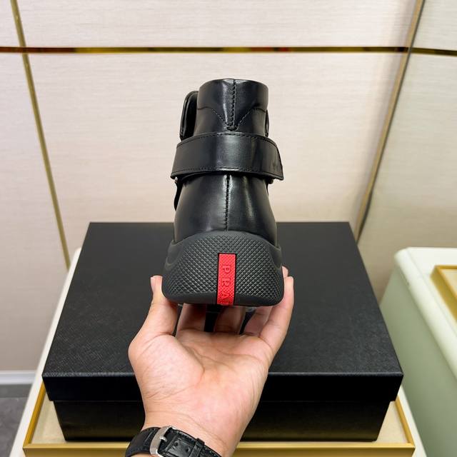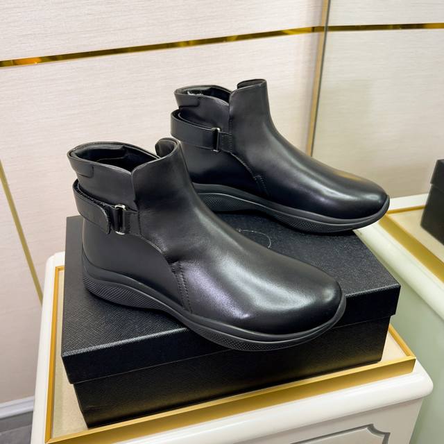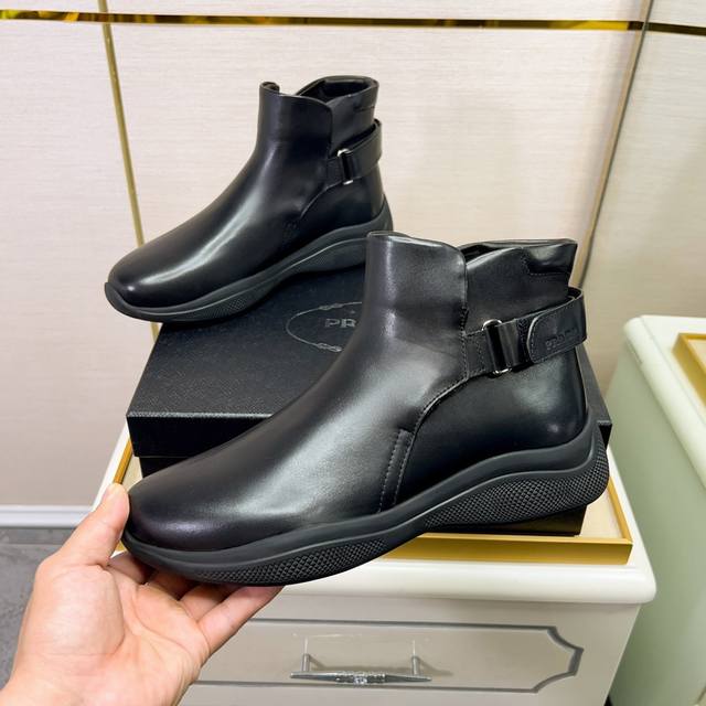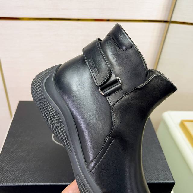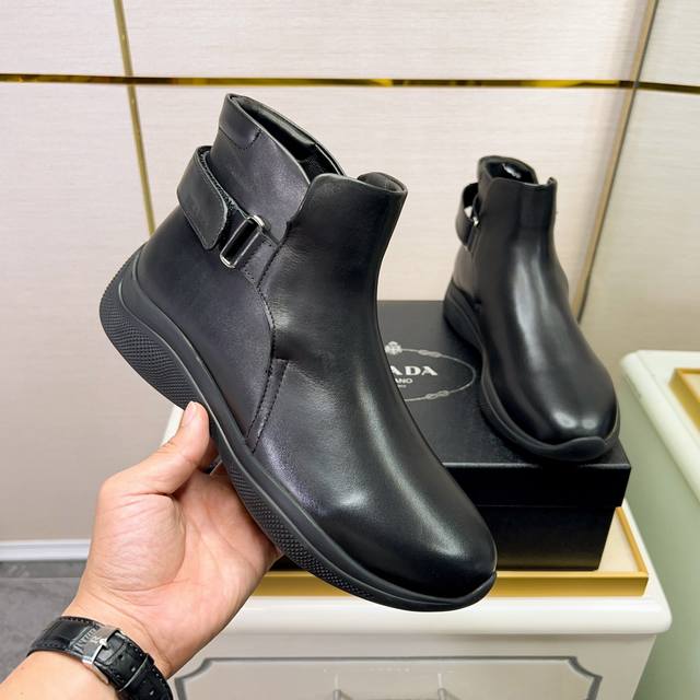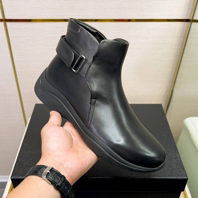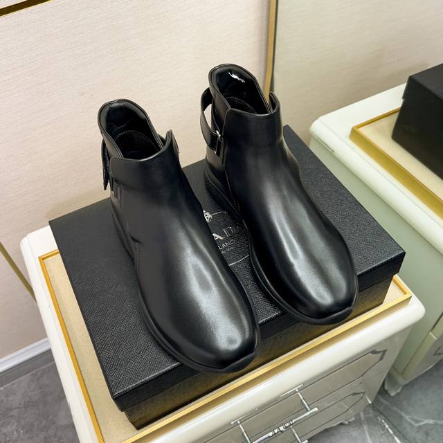 P家 切尔西男鞋,超A货 这款切尔西鞋 配有气垫厚大底,极简主义设计散发充满现代感的迷人魅力。进口皮面,质感好,皮内里 方便穿着 ! 码数39-44 :
