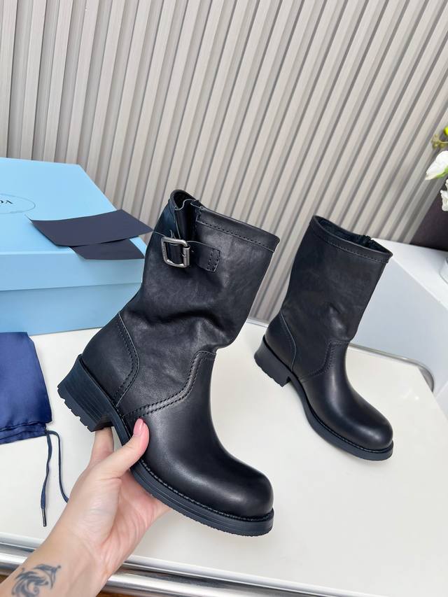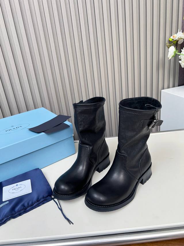prad* 25Ss普拉达复古马丁靴骑士靴时尚机车马丁轻松驾驭 会爆哦 百搭经典的鞋楦,足以征服你的小增高休闲两不失误 面料进口环保植鞣牛皮 内里;牛皮里 Tp