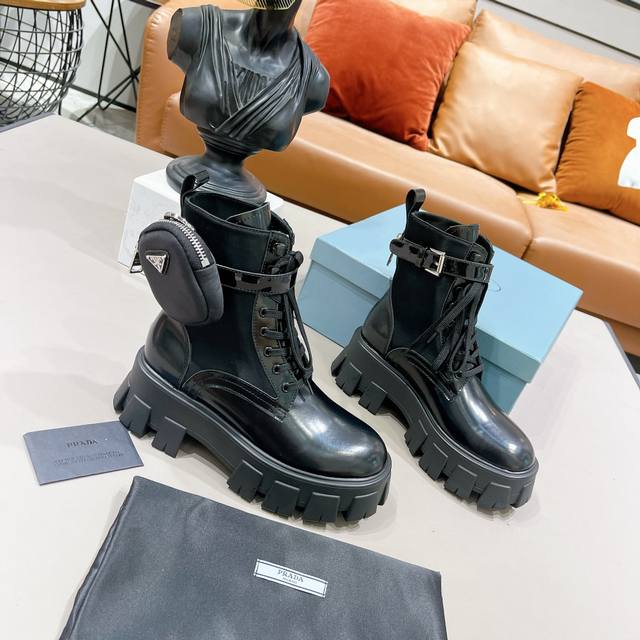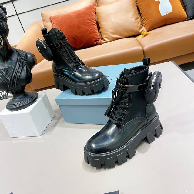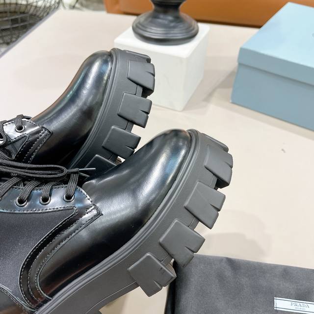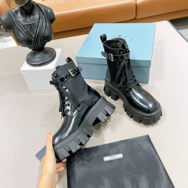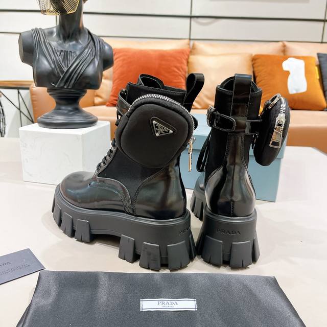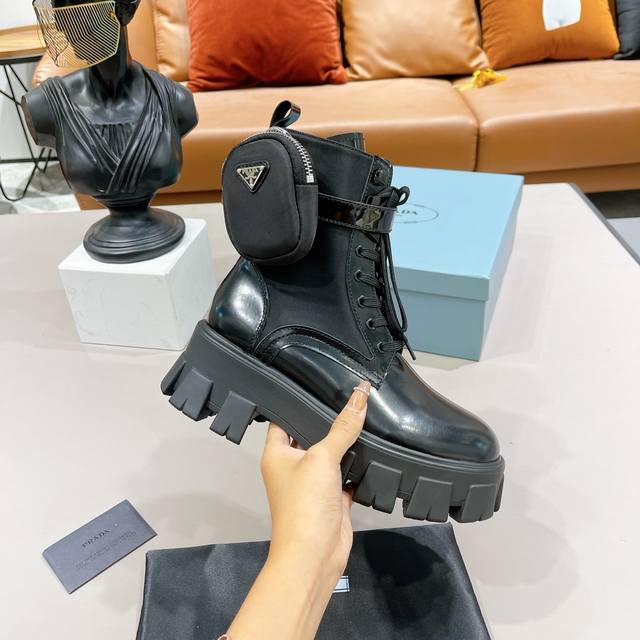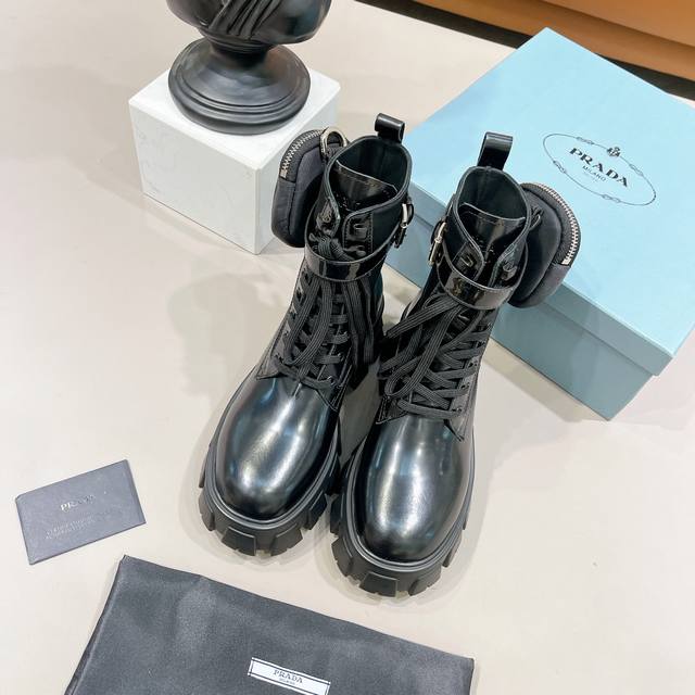 Prada小包包战术骑士靴 单鞋 短靴全部发售 最近得不得了 创新的Prada经典帆布小包搭配上增高机车长靴 一鞋两穿 赞哦欧洲购入Y版1:1复刻 进口丝绸牛皮做面料 细腻 软糯感十足 一点也不硬 内里环保纤维 比真皮更透气舒服 垫脚纯羊皮 所有拉链头都是1:1带Logo的 连包包内里也是完全一致有几家能做到呢?Tpu高韧性大底 有6Cm的高度 所有的材质与工艺 Y版一致短靴 单鞋同时发售 都是开边珠和漆皮两种面料!!三种皮料:牛皮、开边珠、漆皮 码数35-40M标准码 40订做 长靴桶高28.5Cm 跟