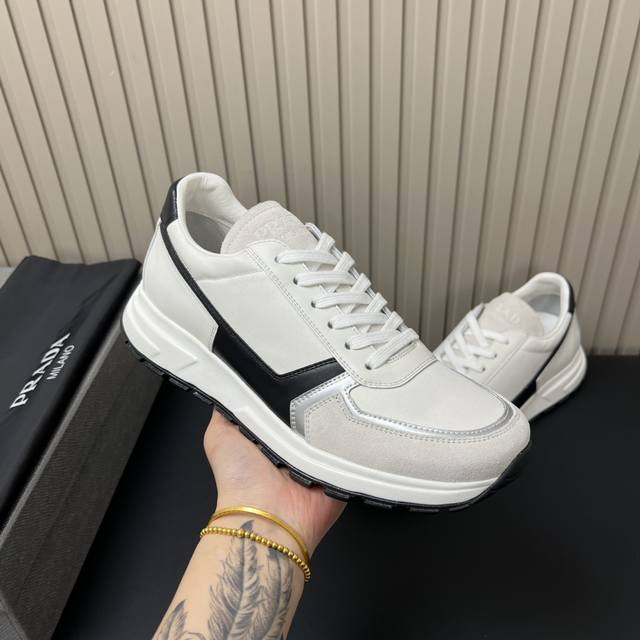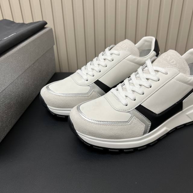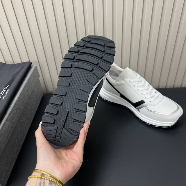 prada普拉达精品男士运动鞋|牛皮拼接网布|橡胶凹凸为系带设计增添格调|简洁大方打造绅士休闲城市风格|弹力Tpu橡胶大底|轻质柔软 脚感非常舒适 Ddd Size: 39-44 38.45定做 DDD