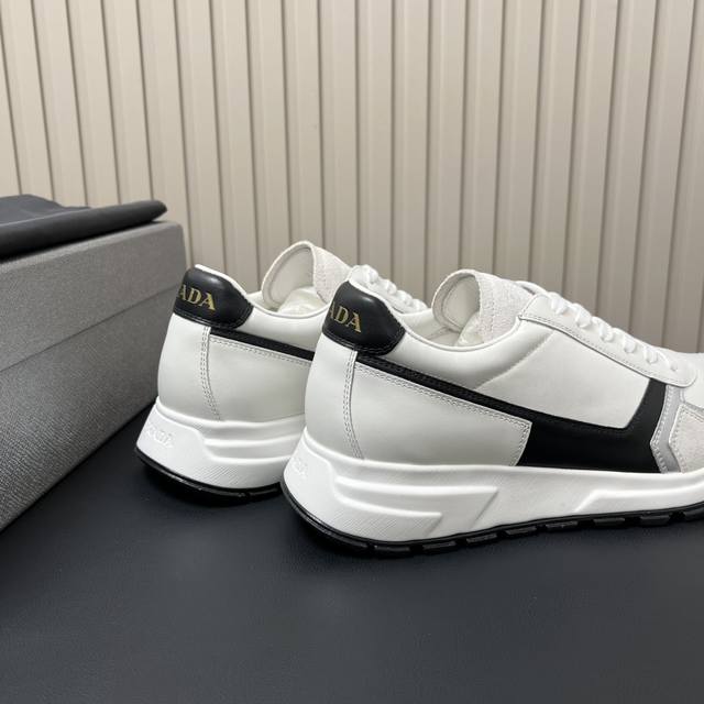 / prada普拉达精品男士运动鞋|牛皮拼接网布|橡胶凹凸为系带设计增添格调|简洁大方打造绅士休闲城市风格|弹力Tpu橡胶大底|轻质柔软 脚感非常舒适 Size: