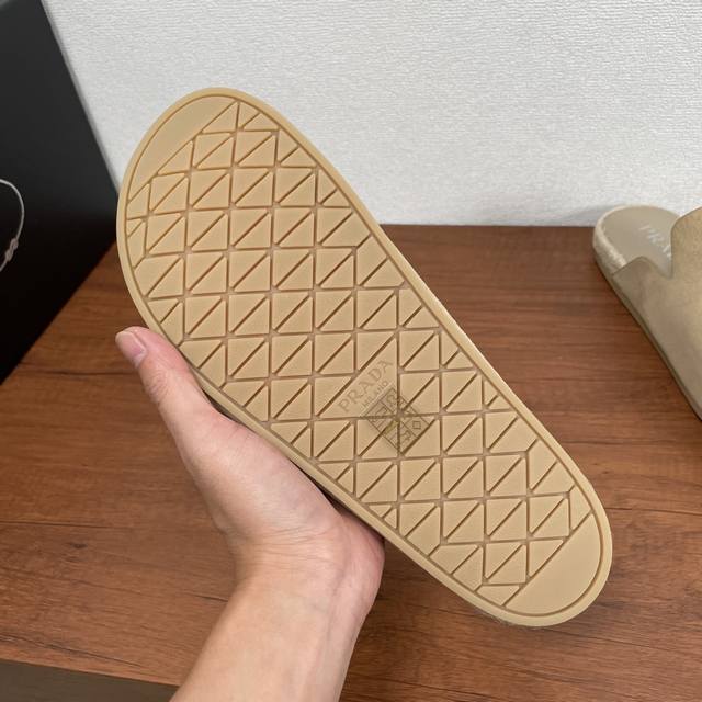 这款时尚休闲穆勒鞋巧妙融合质感绒面牛皮革和小牛皮,精致质感,正面饰以Prada Milano字母压纹徽标,编织绳内底搭配牛皮革跟片,并饰以品牌Logo标识,搭配饰有标志性三角形徽标的轻质橡胶防滑外底。时尚休闲款式,上脚洋气!配全套原包装防尘袋!