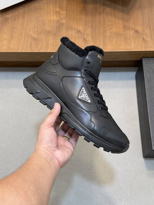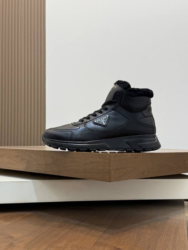 Prada 普拉达 冬季男士毛里休闲鞋 莞产顶级猛货 进口纳帕牛皮鞋面凸起层次设计感 轻盈透气 柔软舒适 小牛皮真皮包边装饰 颇具与众不同的运动风范 真皮鞋舌配经典Prada字母红色胶标徽章 尽显品牌格调 橡胶大底 轻盈且增高约4Cm 真皮垫脚 客供毛里里脚感极佳 配原包装 尺码:39-40-41-42-43-44 标准皮鞋尺码