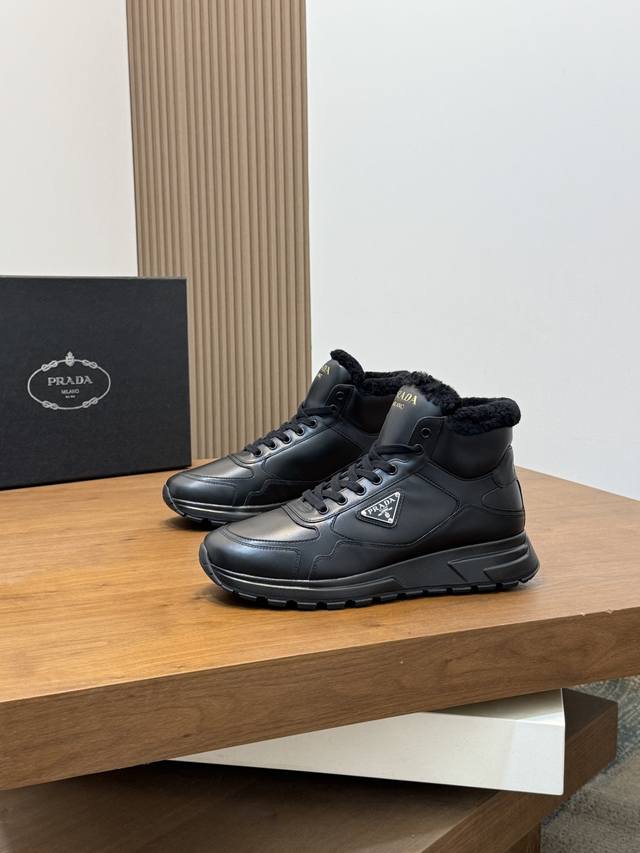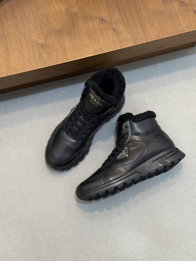 / Prada 普拉达 冬季男士毛里休闲鞋 莞产顶级猛货 进口纳帕牛皮鞋面凸起层次设计感 轻盈透气 柔软舒适 小牛皮真皮包边装饰 颇具与众不同的运动风范 真皮鞋舌配