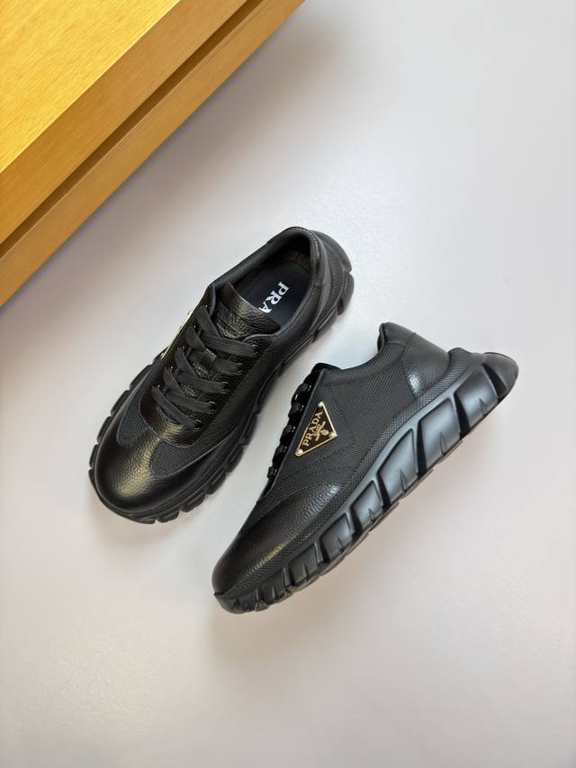 工厂P价 Prada普拉达 男鞋专柜爆款,官网同步,1高品质出货原版牛皮拼接+牛皮内里,11复刻 ,原厂原版底,38-45 45定做不退换
