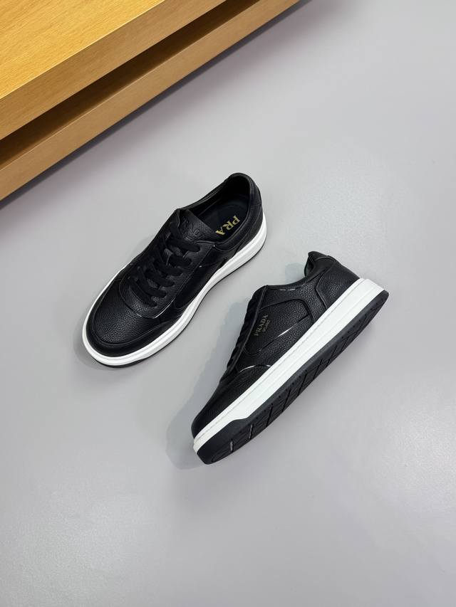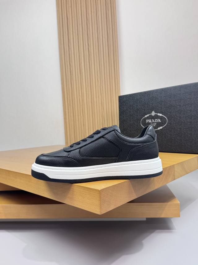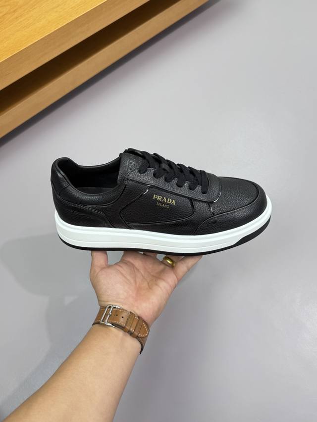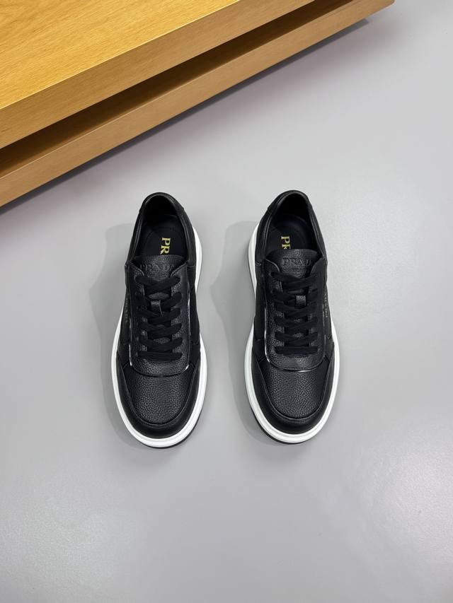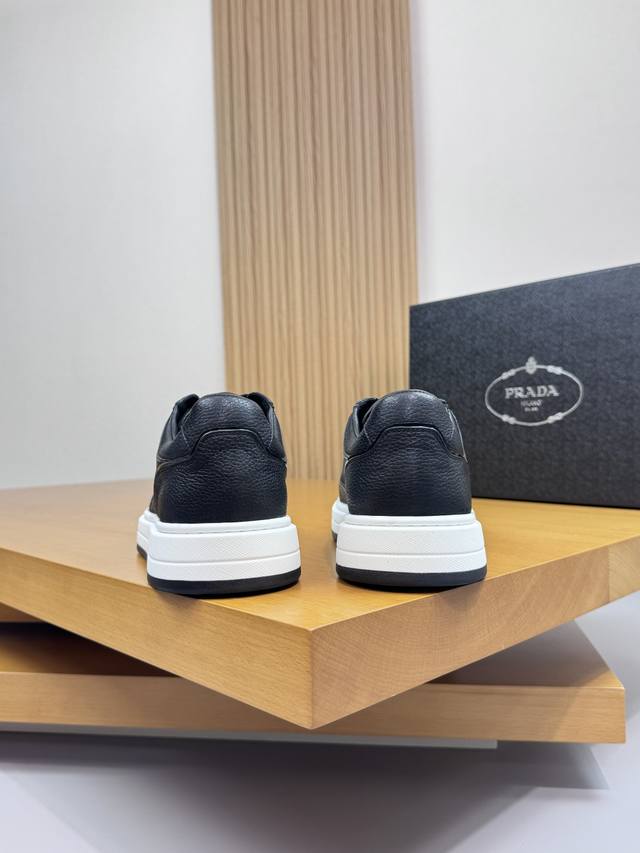 Prada 普拉达 -高端品质 原单 休闲运动鞋 -鞋面:进口摔纹小牛皮.车引边工艺、鞋身.丝印高周波品牌Logo、鞋舌.空压品牌Logo -内里:水染牛皮 -大底:超轻Tpr 橡胶;双色成型大底 -超高品控 做工精细:凸显 高端 贵气 档次 -Size :38-44 45,可订做 Prd0372