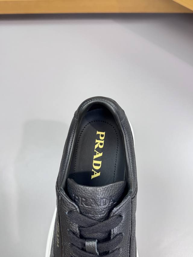 / Prada 普拉达 -高端品质 原单 休闲运动鞋 -鞋面:进口摔纹小牛皮.车引边工艺、鞋身.丝印高周波品牌Logo、鞋舌.空压品牌Logo -内里:水染牛皮 -