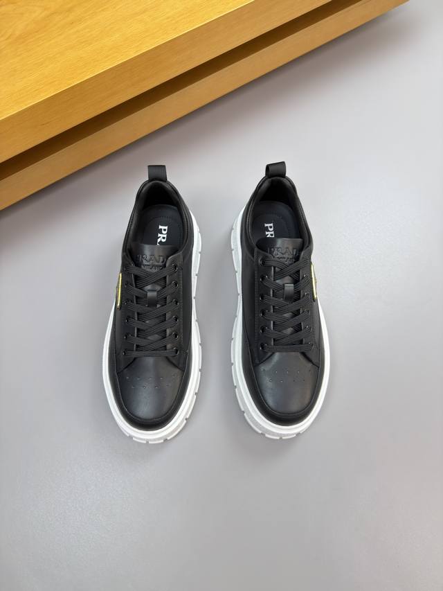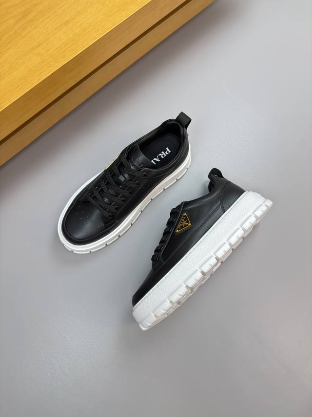 Prada 普拉达 -高端品质 原单 休闲运动鞋 -鞋面:进口纳帕小牛皮、鞋身.车缝品牌金属扣件、鞋舌.空压品牌Logo -内里:水染牛皮 -大底:超轻Tpu发泡;成型大底 -超高品控 做工精细:凸显 高端 贵气 档次 -Size :38-44 45,可订做 Prd0372