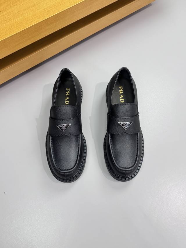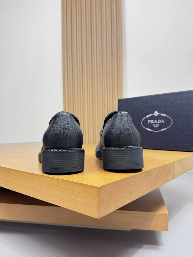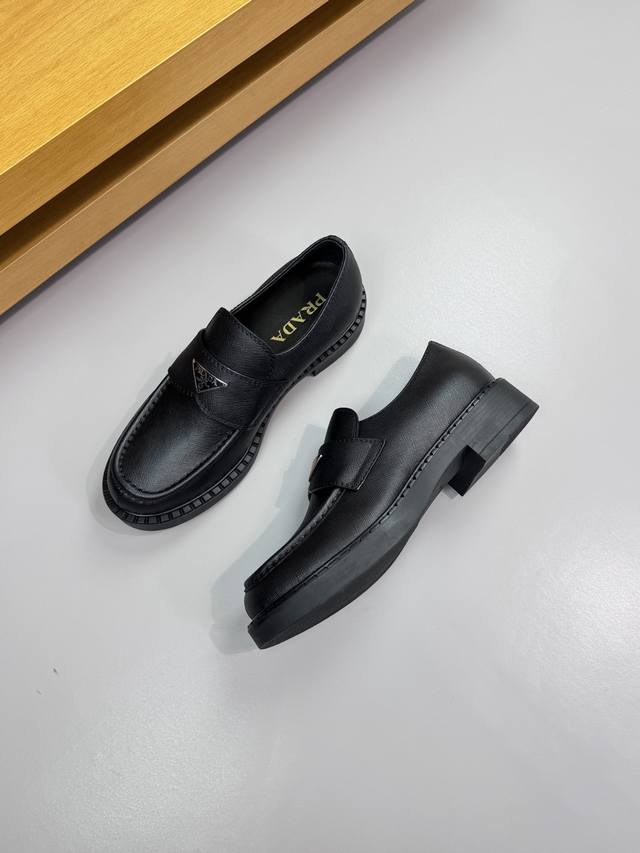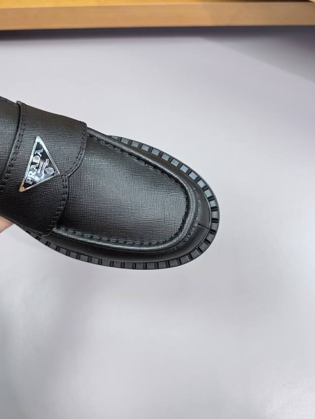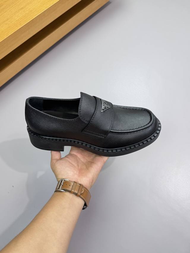 Prada 普拉达 -高端品质 原单 正装皮鞋 -鞋面:进口手掌纹小牛皮手、鞋丹手工串缝马克线、品牌金属扣件横担装饰 -内里:水染牛皮 -大底:超轻Tr 橡胶;成型大底 -超高品控 做工精细:凸显 高端 贵气 档次 -Size :39-44 38,45,46,可订做 Prd0155