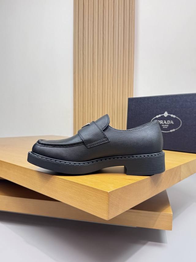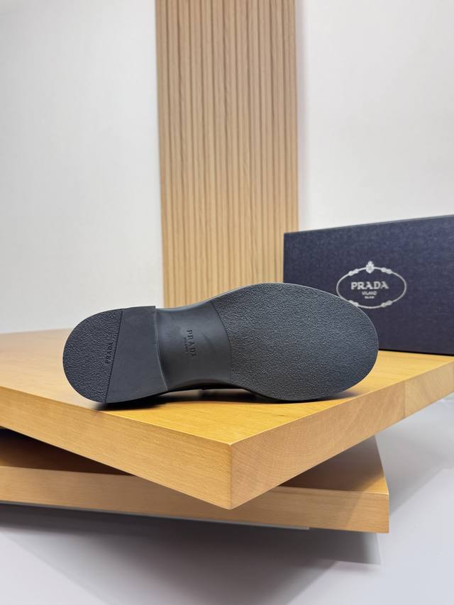 Prada 普拉达 -高端品质 原单 正装皮鞋 -鞋面:进口手掌纹小牛皮手、鞋丹手工串缝马克线、品牌金属扣件横担装饰 -内里:水染牛皮 -大底:超轻Tr 橡胶;