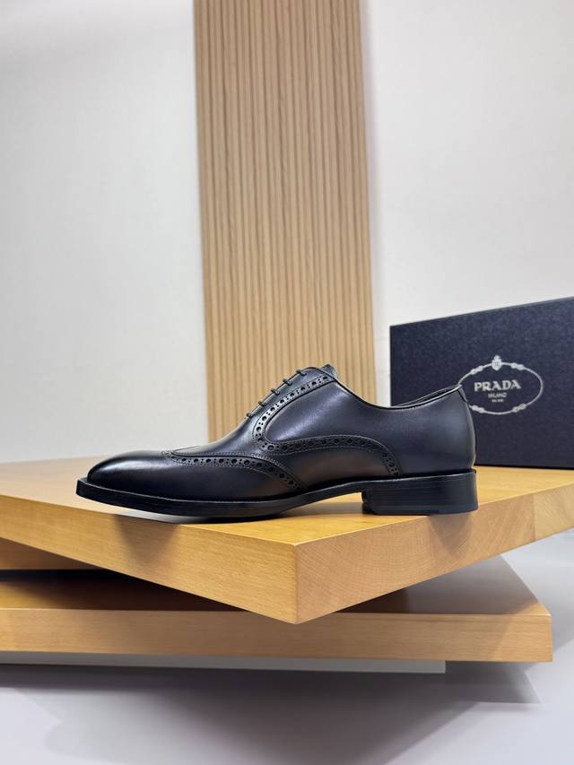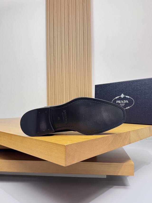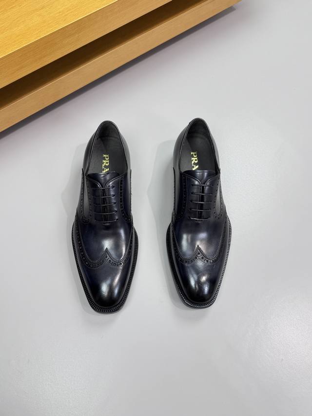 Prada 普拉达 -高端品质 原单 正装皮鞋 -鞋面:进口纳帕牛皮手工改色工艺、纯手工打孔工艺:完美拼接 -内里:水染牛皮 -大底:超轻真皮 橡胶;组合成型真皮大底 -超高品控 做工精细:凸显 高端 贵气 档次 -Size :39-44 38,45,46,可订做 Prd0155