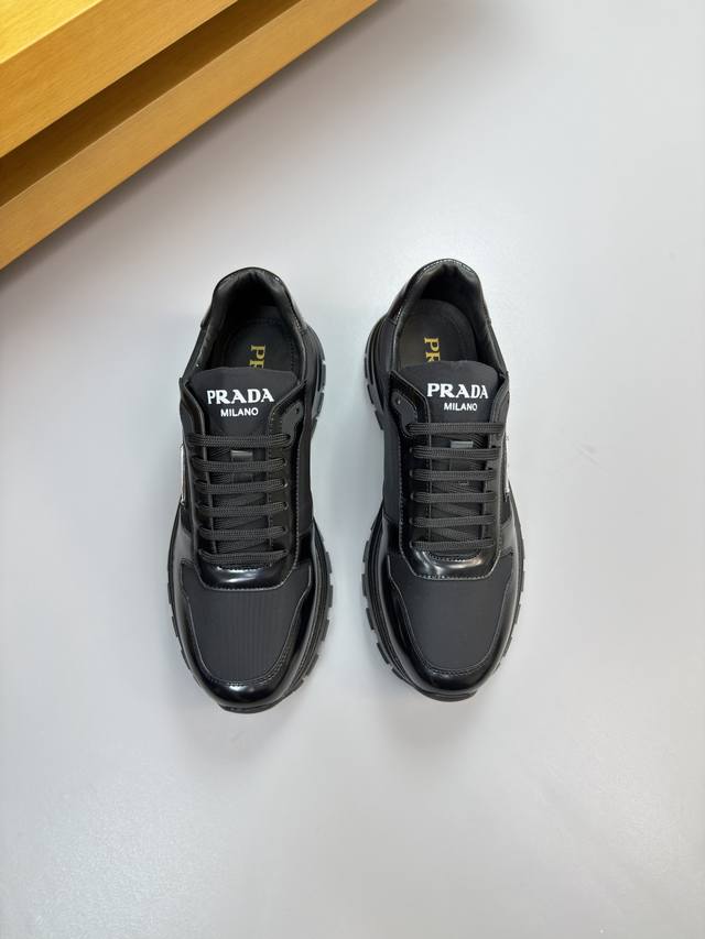 p Prada 普拉达 男士新款休闲鞋,这款鞋面采用进口小牛皮+羊里!大底采用防滑发泡大底,上脚脚感很好,洋气时髦单品!...
