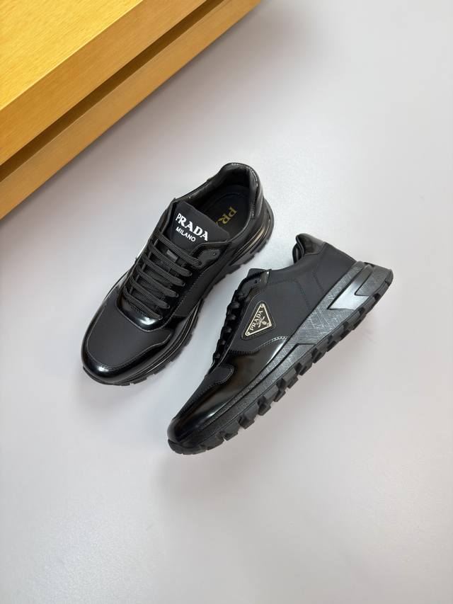 出厂价P Prada,情侣休闲鞋,原版1比1开发,面料进口牛皮,内里丝绸羊皮,大底橡胶,上脚舒适柔软,码数女:35至41。。男38-44