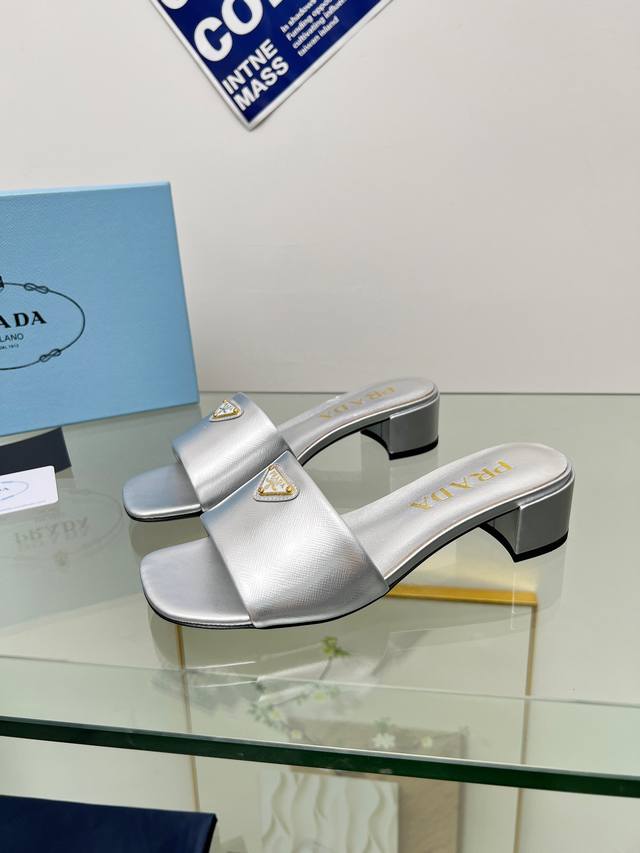Prada 普拉达 Ss春夏新品 Saffiano牛漆皮高跟拖鞋 闪亮登场 小红书各大博主推荐,彰显经典魅力。 跟高4Cm 面料十字纹牛漆皮 羊皮内里 意大利真