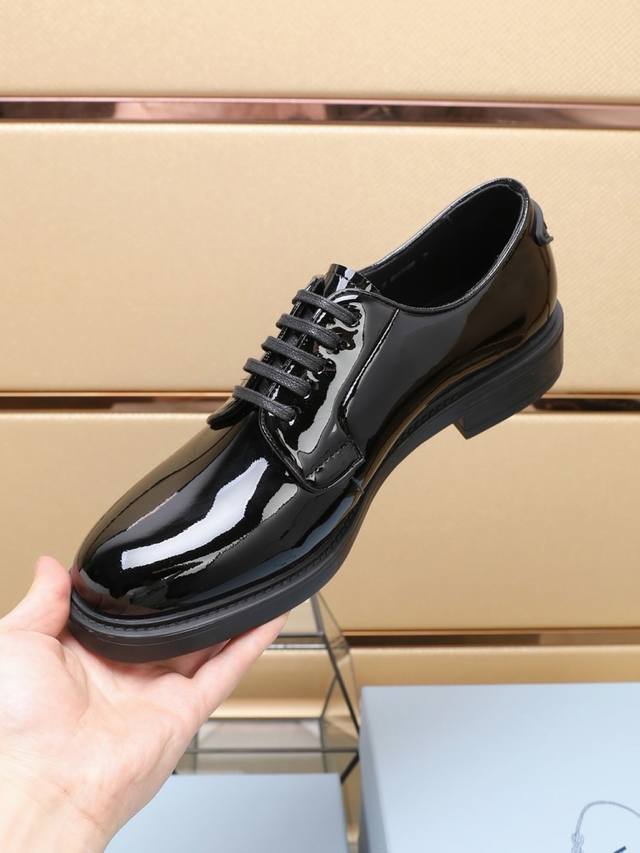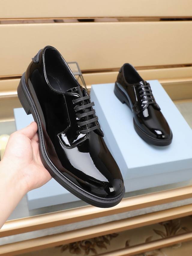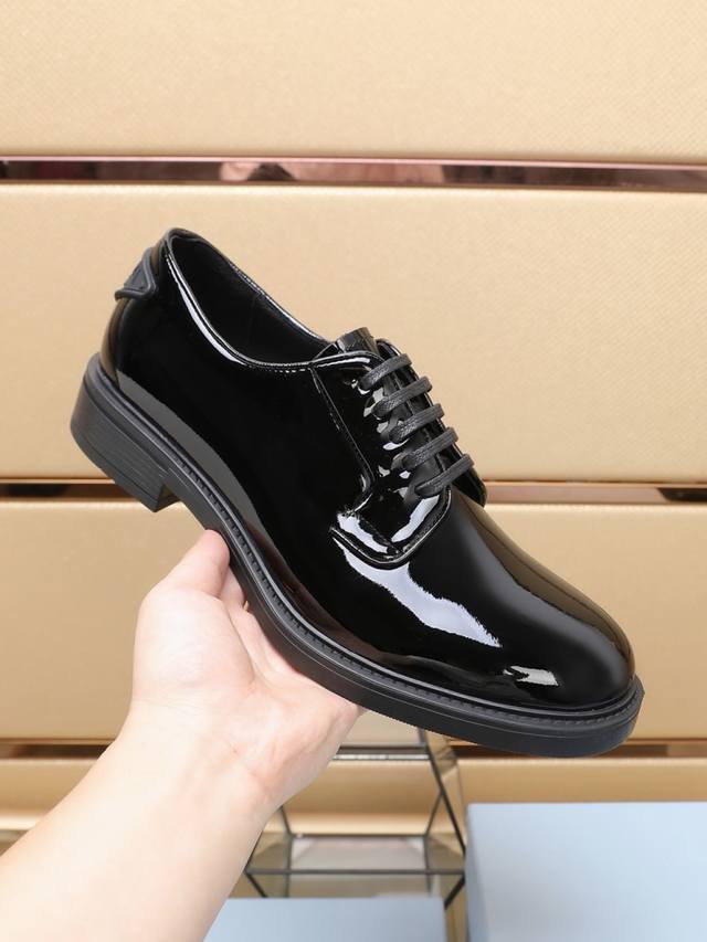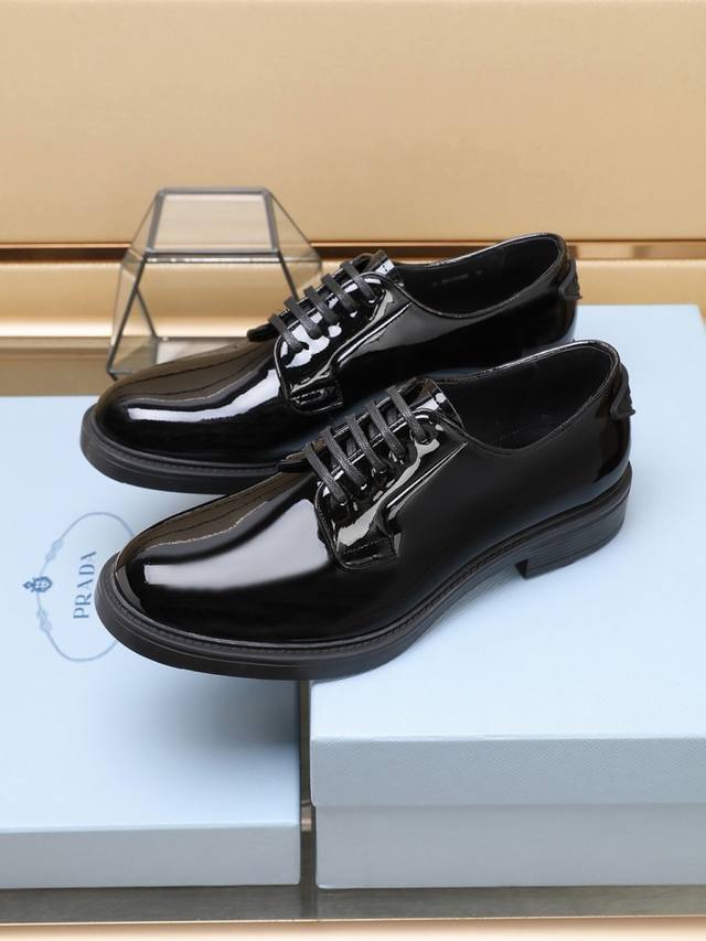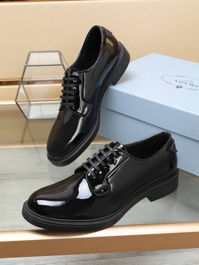 / Prada 最新高端顶端品牌奢侈~代购,顶级~质量。新時尚商务男鞋鞋面選用原版开边珠牛皮牛皮内里,精细做工。原版个性时尚柔软组合耐磨防滑大底,上脚轻巧舒适,实物