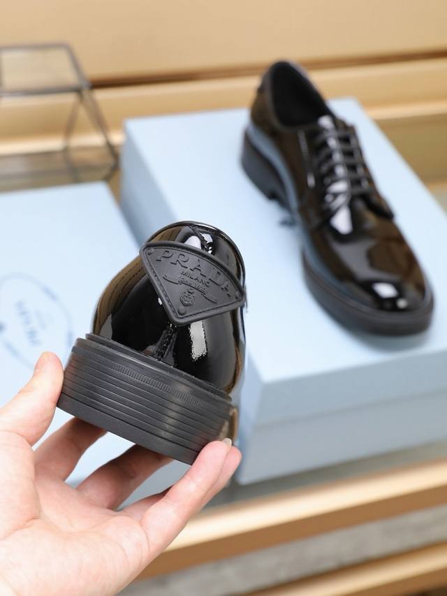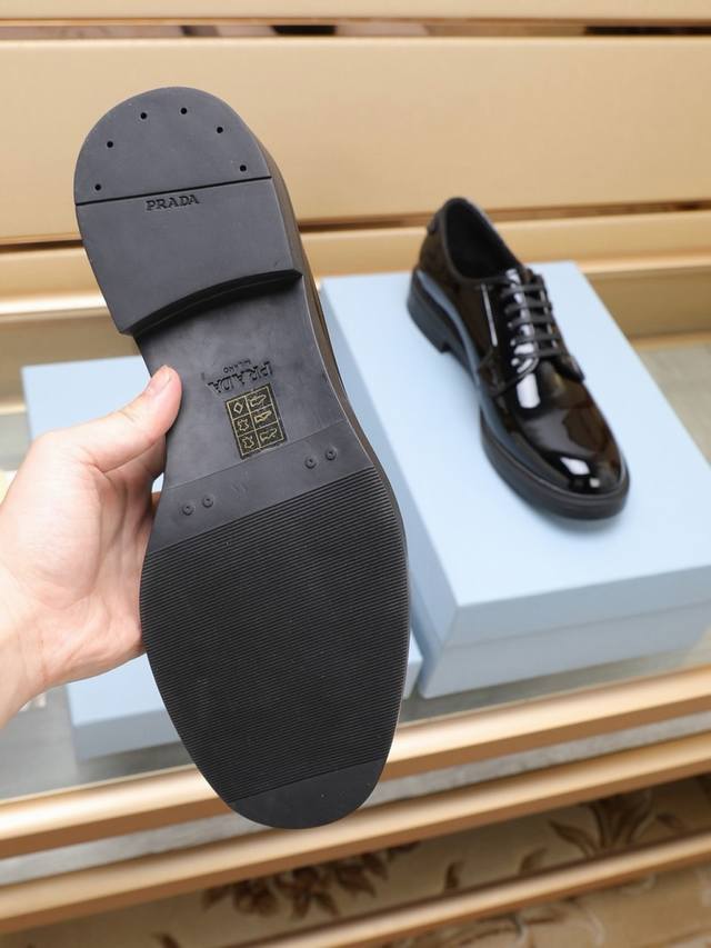 Prada 最新高端顶端品牌奢侈~代购,顶级~质量。新時尚商务男鞋鞋面選用原版开边珠牛皮牛皮内里,精细做工。原版个性时尚柔软组合耐磨防滑大底,上脚轻巧舒适,实物