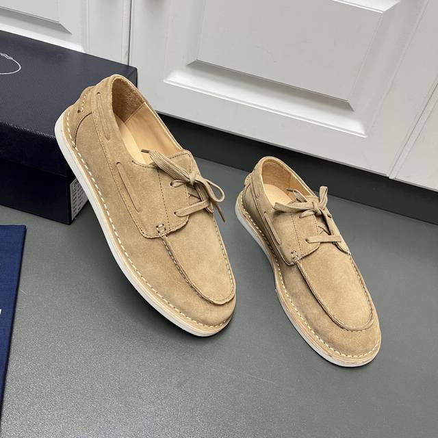 / Prada 男士新款系带皮革乐福鞋 这款采用植绒二层牛皮革打造,结合经典设计与手工细节,将精致气息与休闲惬意融为一体。采用系带风格设计,裙饰拼接明线接缝,搭配1