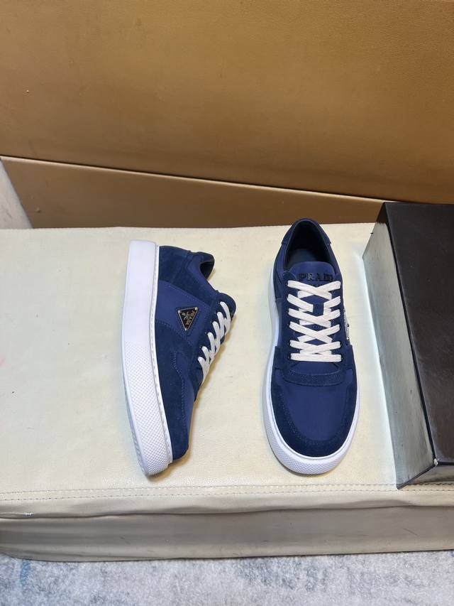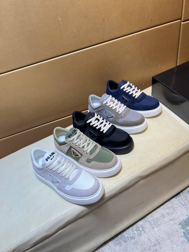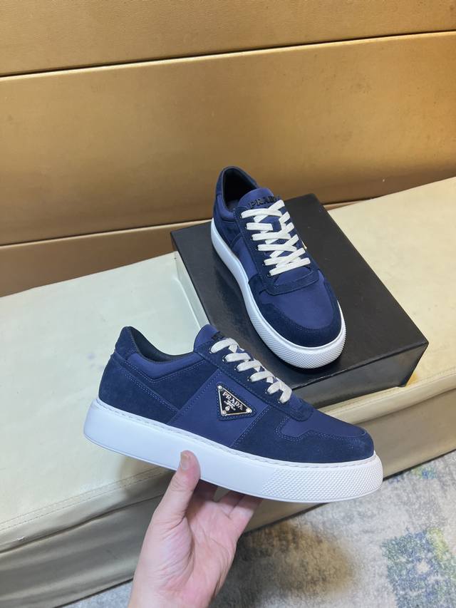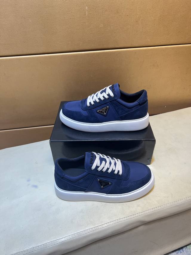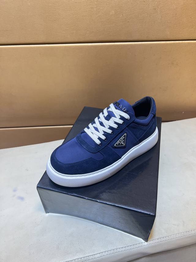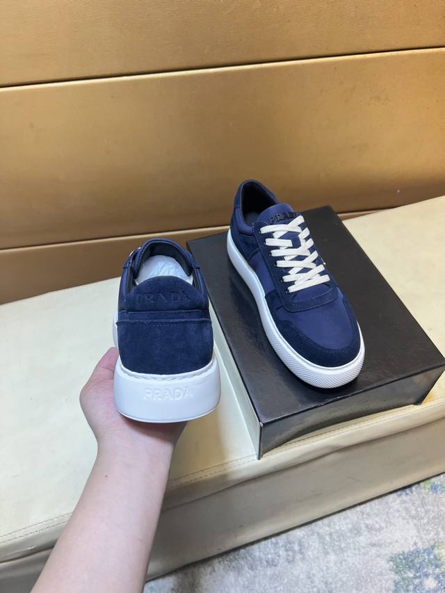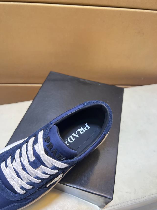 工厂P价 Prad*普拉达 专柜爆款男鞋,官网1:1制作,进口磨砂牛皮面料拼接,牛皮内里 原厂特供原版底,38-45 45订做不退换