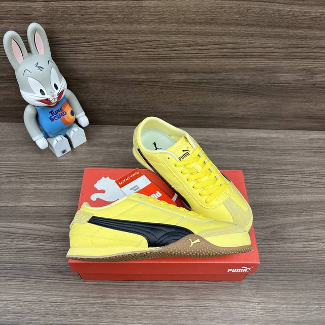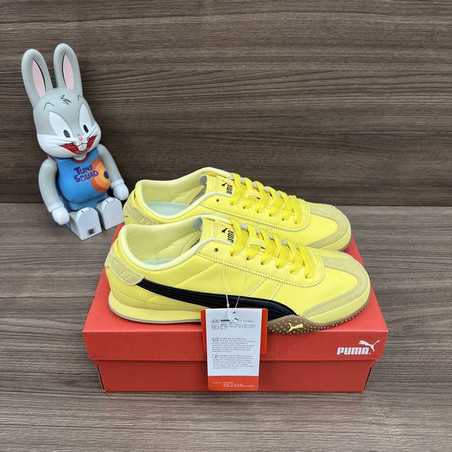 FFF 顶级版本Puma Bella Ut 时尚百搭舒适薄底鞋 防滑耐磨 低帮 生活休闲鞋男女同款黄黑色。 DDD 货号: 402186-05 DDD 包装:全套得物配件加固飞机盒包装! DDD 码数:36-45码 正码 DDD
