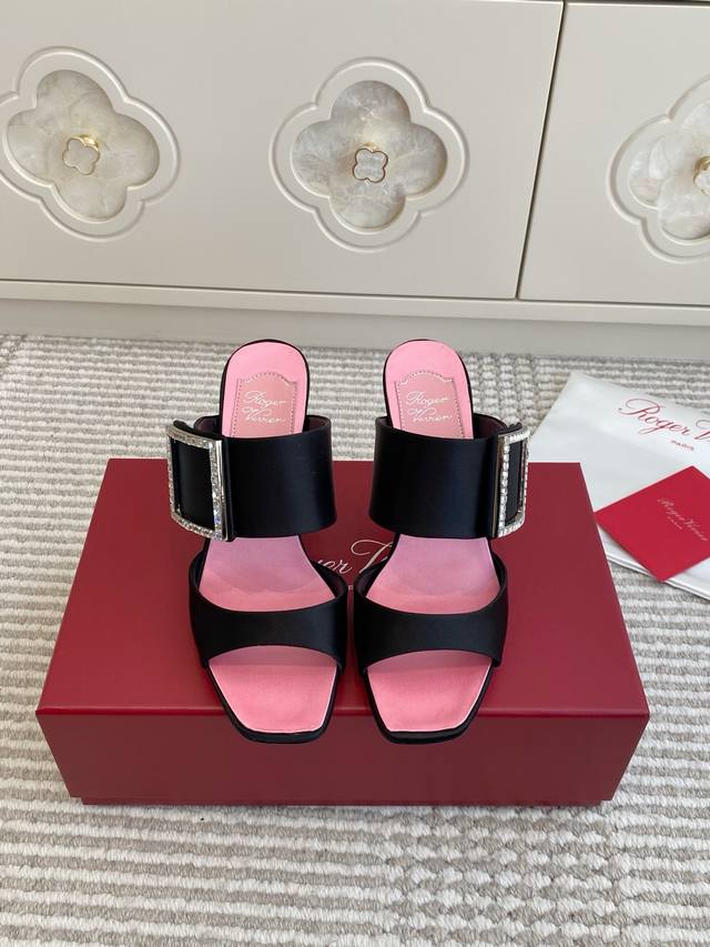 FFF Roger Vivier Fw25 New Arrival~钻扣高跟方头拖鞋 DDD Rv家的Trompette系列高跟鞋,丝缎+方形水钻扣,超有辨识度走路稳又优雅,穆勒鞋设计穿脱方便,鞋垫粉色细节超加分 DDD 论搭裙装还是裤装,都能轻松提升都市淑女气质,晚宴,派对,日常都能驾驭,时髦又实用 DDD Size:35-39 40 41定做不退换 DDD