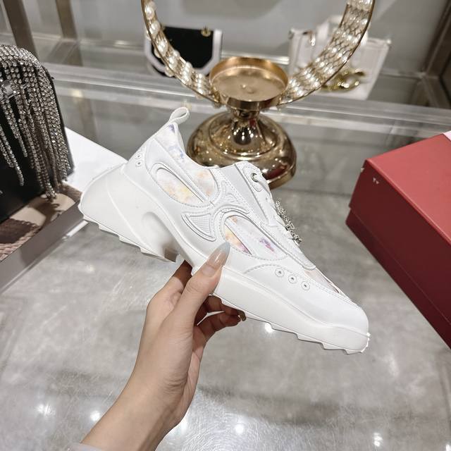 出厂 Rv新款Roger Vivier品牌2025 Viv‘Motor系列最美运动休闲鞋~ 顶级版本 DDD 维维亚精致风格,皮革拼镜面织物和网眼面料制成点缀可拆卸闪钻饰扣,精致优雅施华洛水晶钻扣简直太赞了上脚秀气又超轻便~颜值和脚感都很能打 DDD 鞋面:牛皮+原版进口订制特殊料 DDD 内里:莱卡+羊皮 DDD 五金:原版施华洛世奇闪亮水钻 DDD 鞋底:原版Ip防滑齿轮大底 DDD 码数:35-40码 DDD 跟高:5Cm DDD