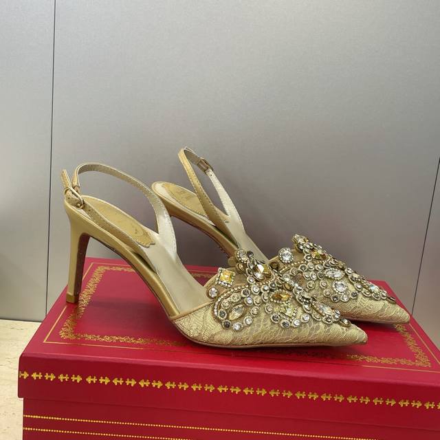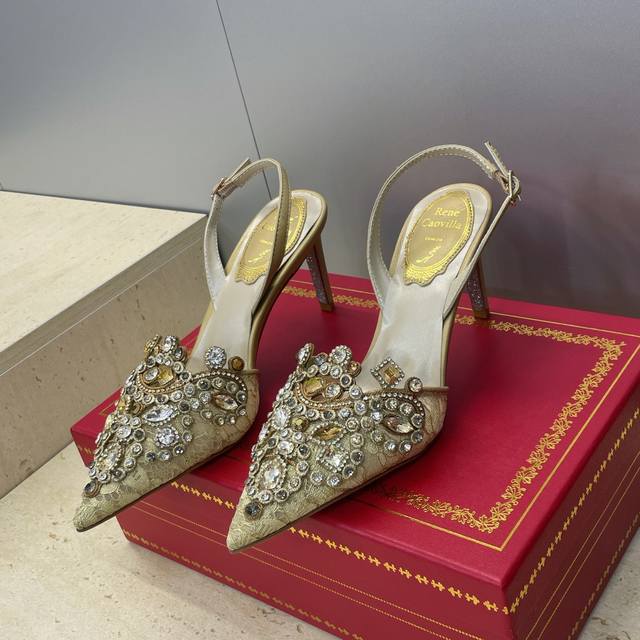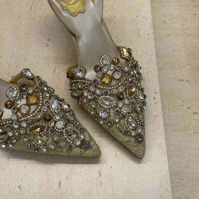 / 工厂p价p 莞货 代购级 Rene Caovilia 经典系列仙女婚鞋 Rc字母Logo水钻高跟尖头后空女凉鞋 材质:鞋面进口环保透气蕾丝面料镶烫施华洛世奇水钻