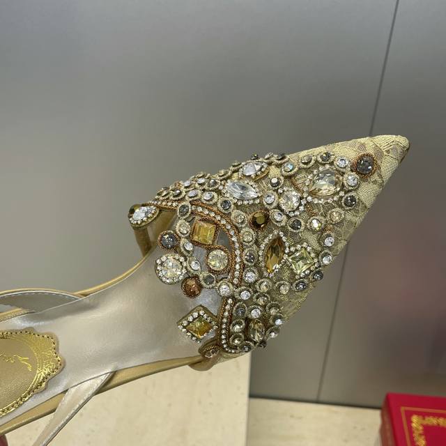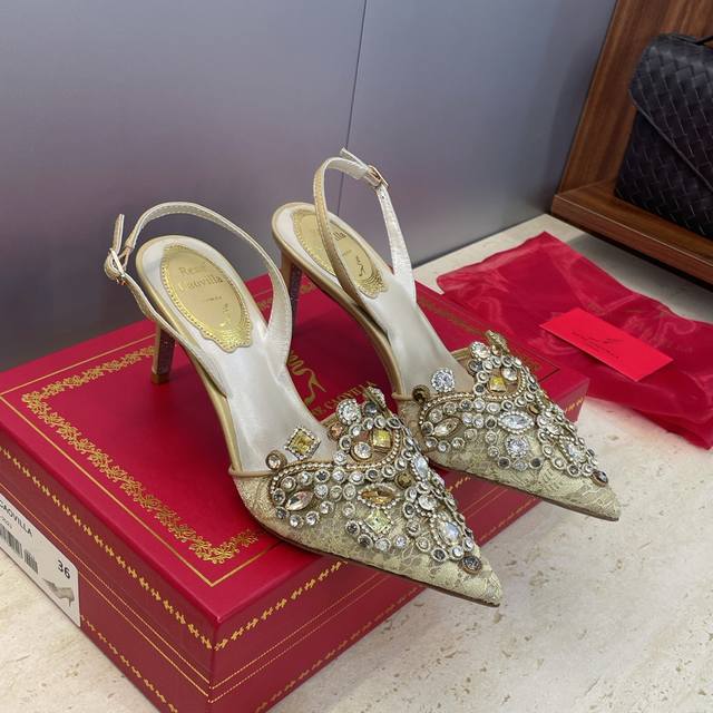 工厂p价p Ddd 莞货 代购级 Rene Caovilia 经典系列仙女婚鞋 Rc字母Logo水钻高跟尖头后空女凉鞋 Ddd 材质:鞋面进口环保透气蕾丝面料镶烫施华洛世奇水钻+水染羊皮垫脚+意大利真皮大底 Ddd 跟高:单鞋6.5Cm 凉鞋7.5Cm Ddd Size:34-40 34.40定制不退换 DDD