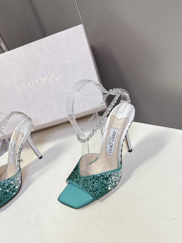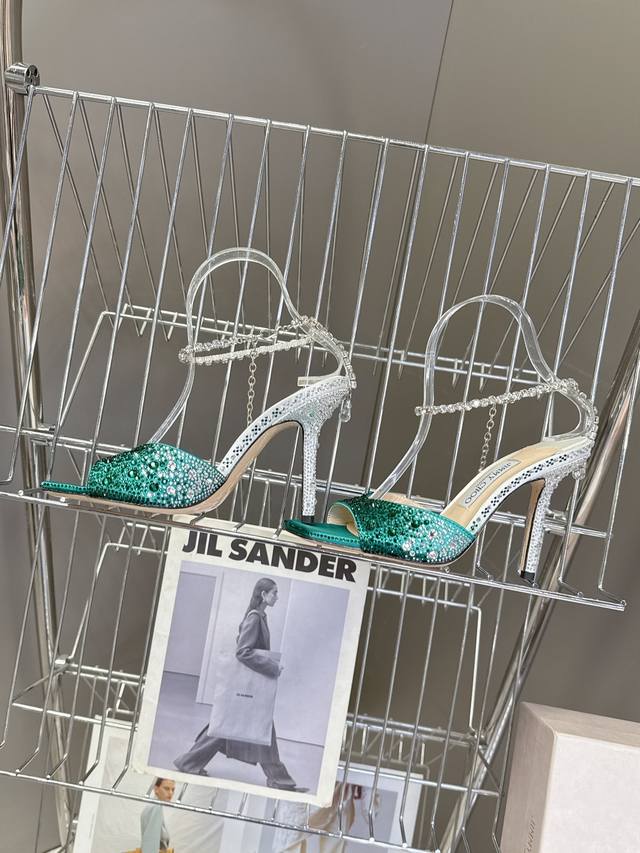 FFF 水钻星空Jlmmy Choo摩登鞋履,街拍神器Sae水晶链高跟凉鞋 尖拖系列 幻彩拼色烫钻款 夺目彩虹婚鞋 DDD DDD 整鞋采用施华洛世奇水晶烫钻 个性凉鞋系,99% 的独特个体,添上1%的出众灵感,满分街拍,让你分分秒秒出大片。点点闪耀,璀璨炫光,浪漫的写真就绪,照亮你的好心情。鞋跟都是手工烫钻,原版定制水晶钻项链密密镶嵌,织出星光幕布 DDD DDD 面料:高级真丝缎烫钻 DDD 内料:上等小羊皮 DDD 大底:意大利三A级牛皮底 DDD 跟高:10Cm DDD 码数:35-39 40、4